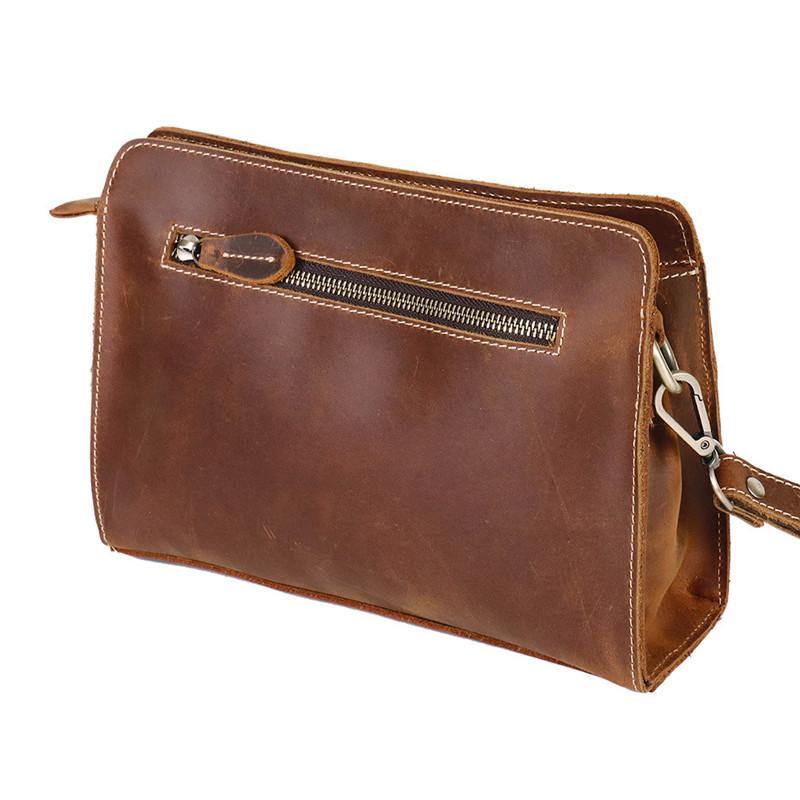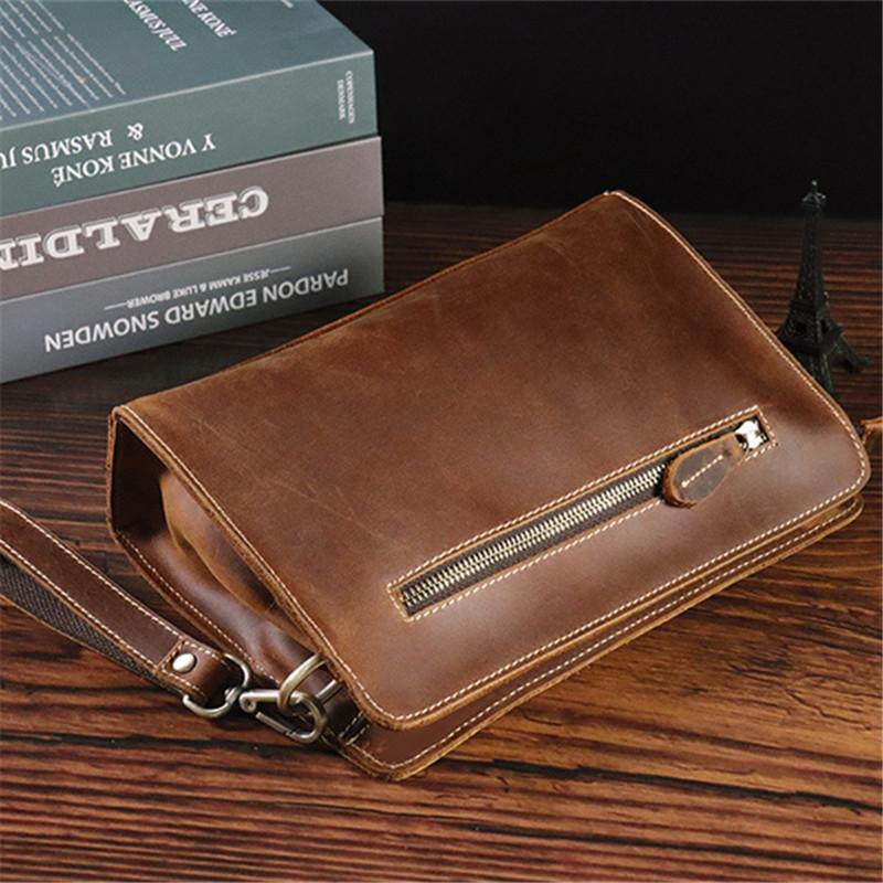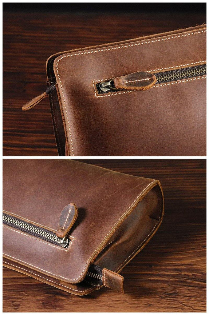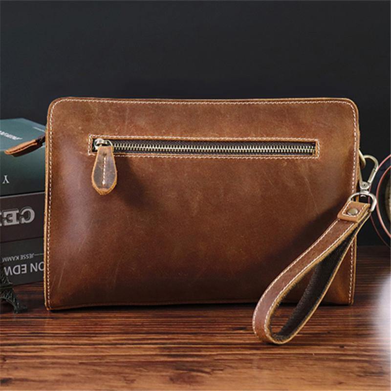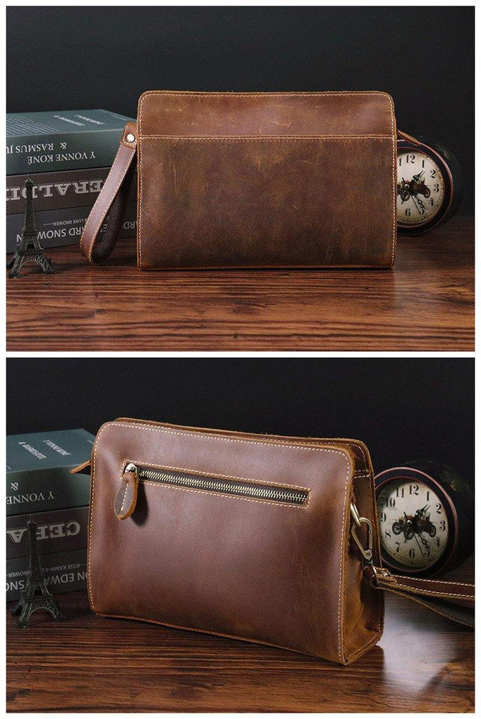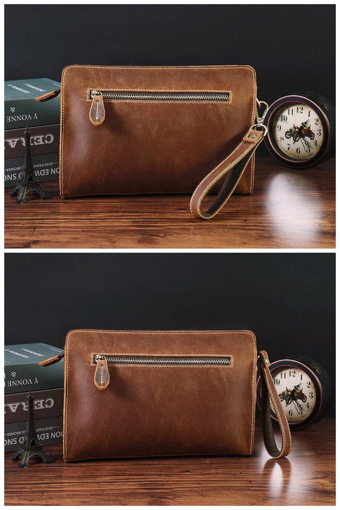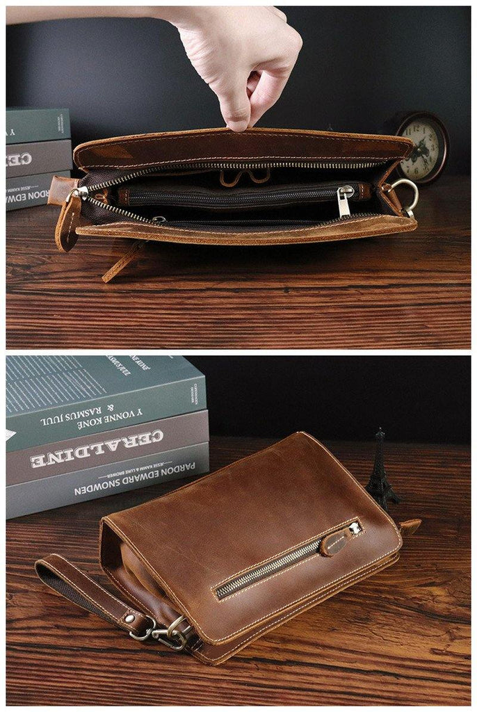 Design: Brown Mens Leather Slim Zipper Clutch Wristlet Purse Bag Clutch Bags For Men