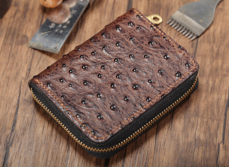 Style: Brown Ostrich Pattern Leather Mens Black Zipper Bifold Long Wallet Black Clutch Wallet For Men