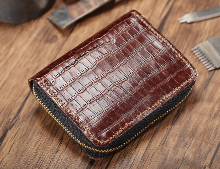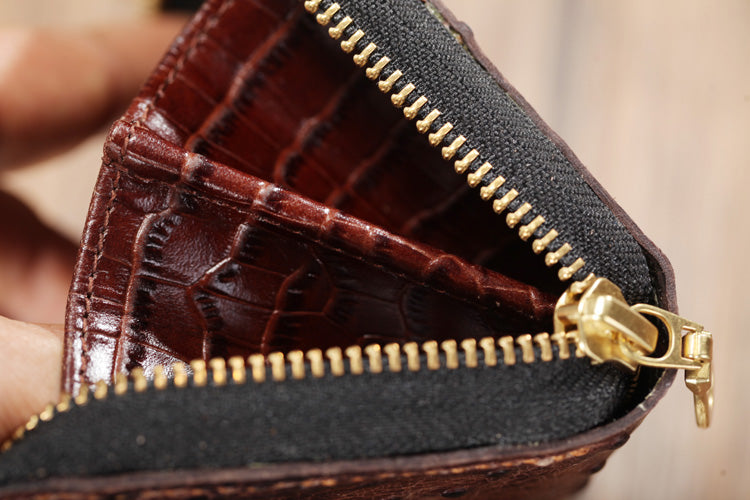 Design: Brown Ostrich Pattern Leather Mens Black Zipper Bifold Long Wallet Black Clutch Wallet For Men