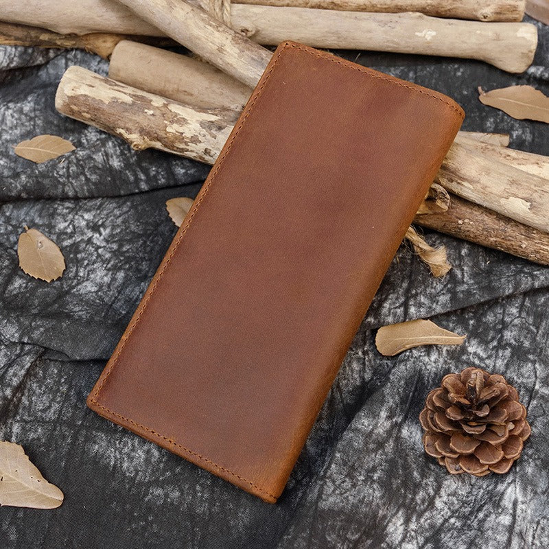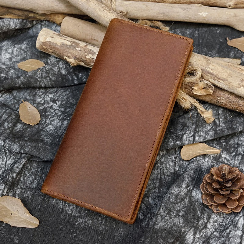 Style: Brown Slim Long Wallet Leather Mens Bifold Long Wallet Minimalist Long Wallet For Men