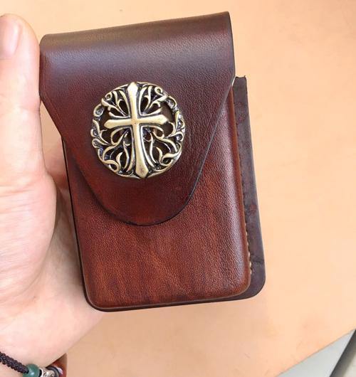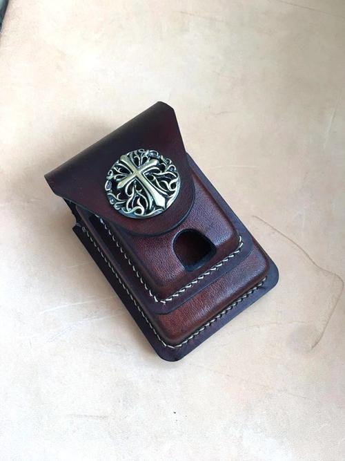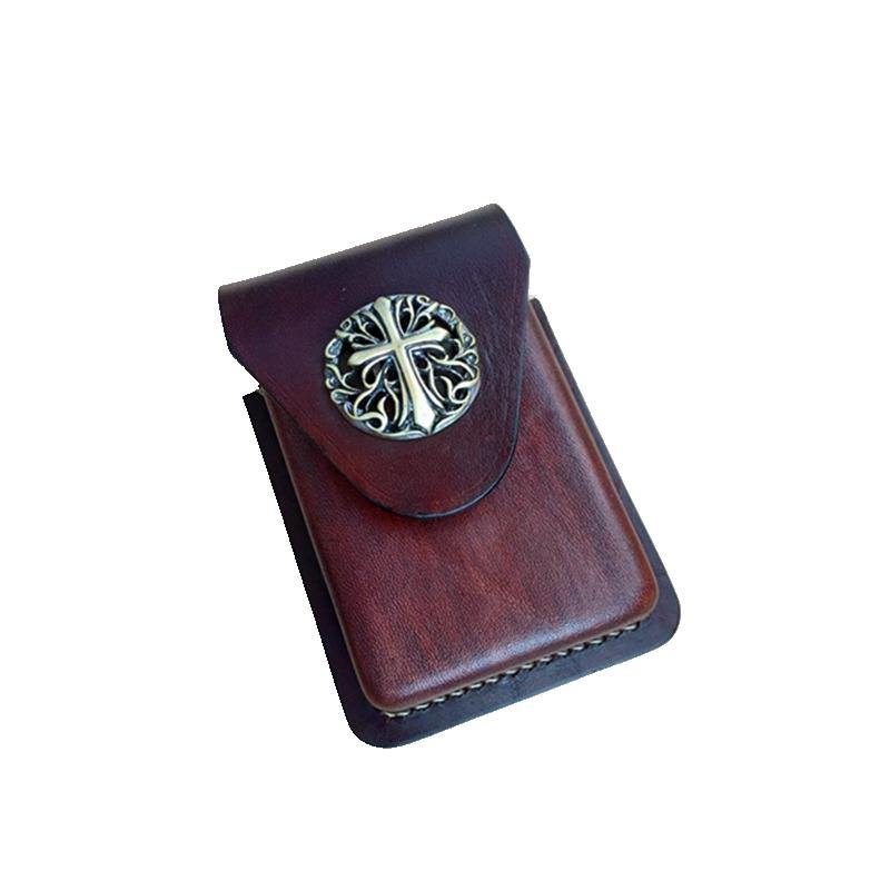 Design: Brown Thick Leather Cigarette Case with Lighter Cover Protective Lighter Cover For Men
