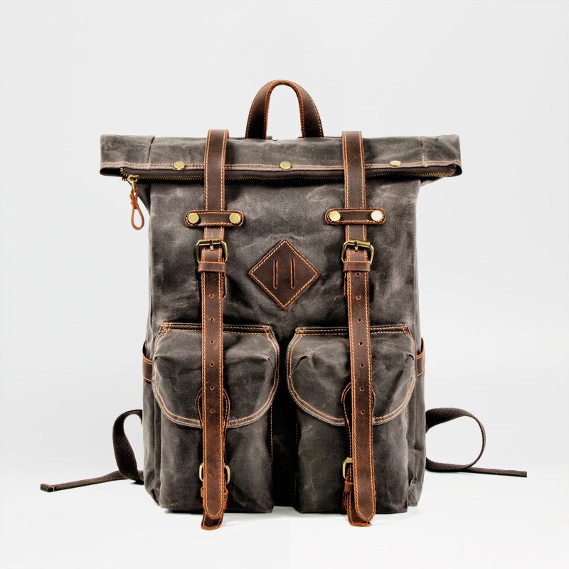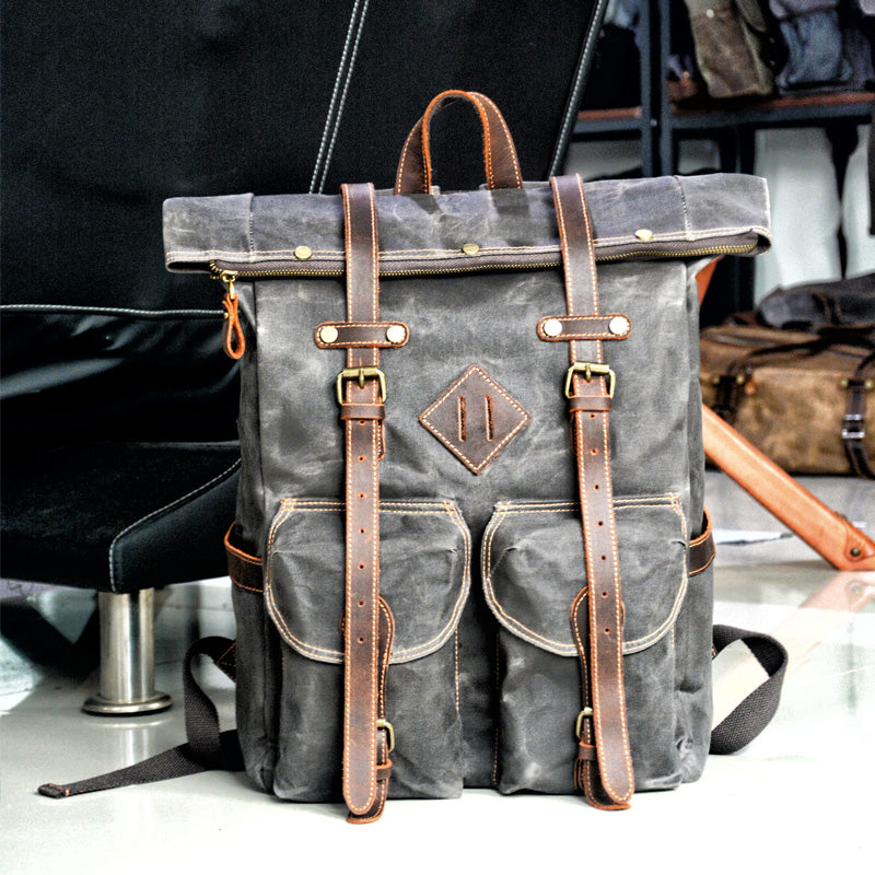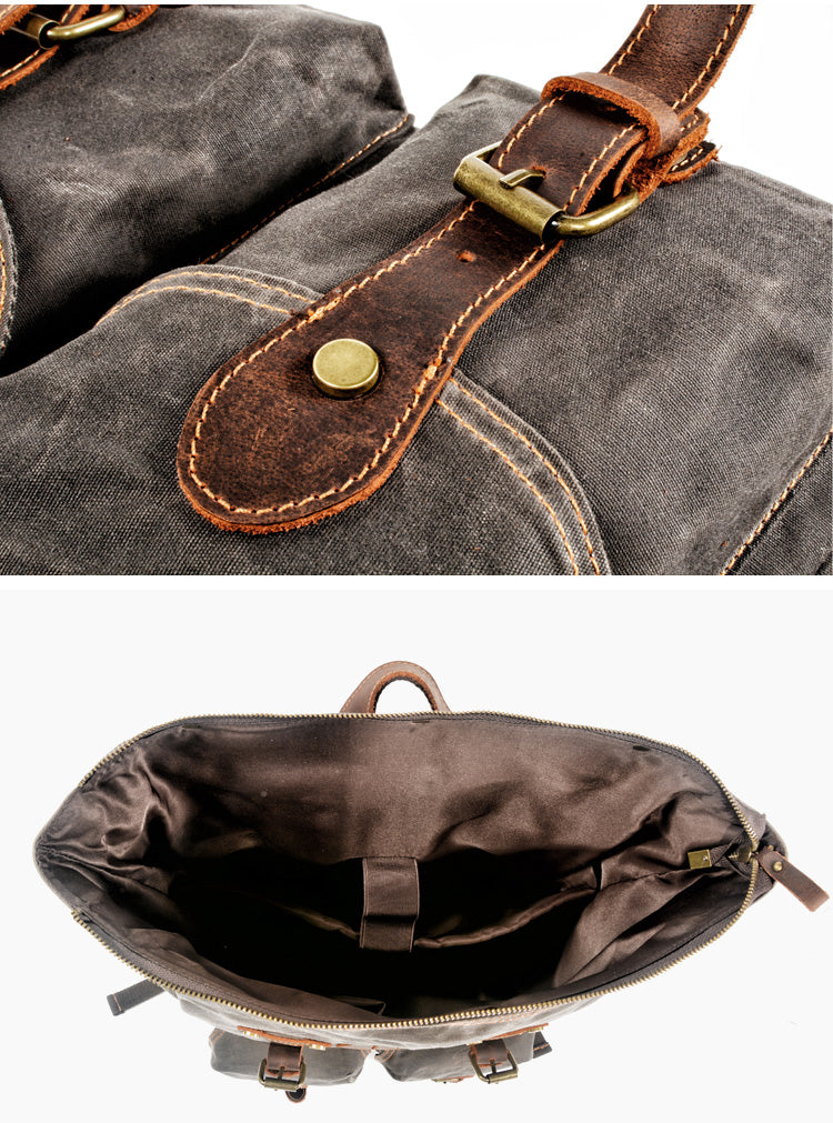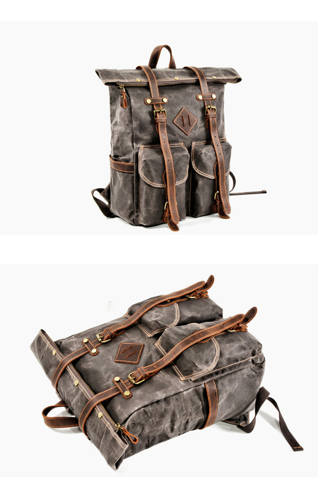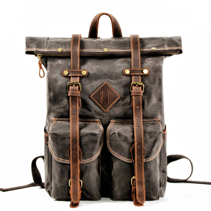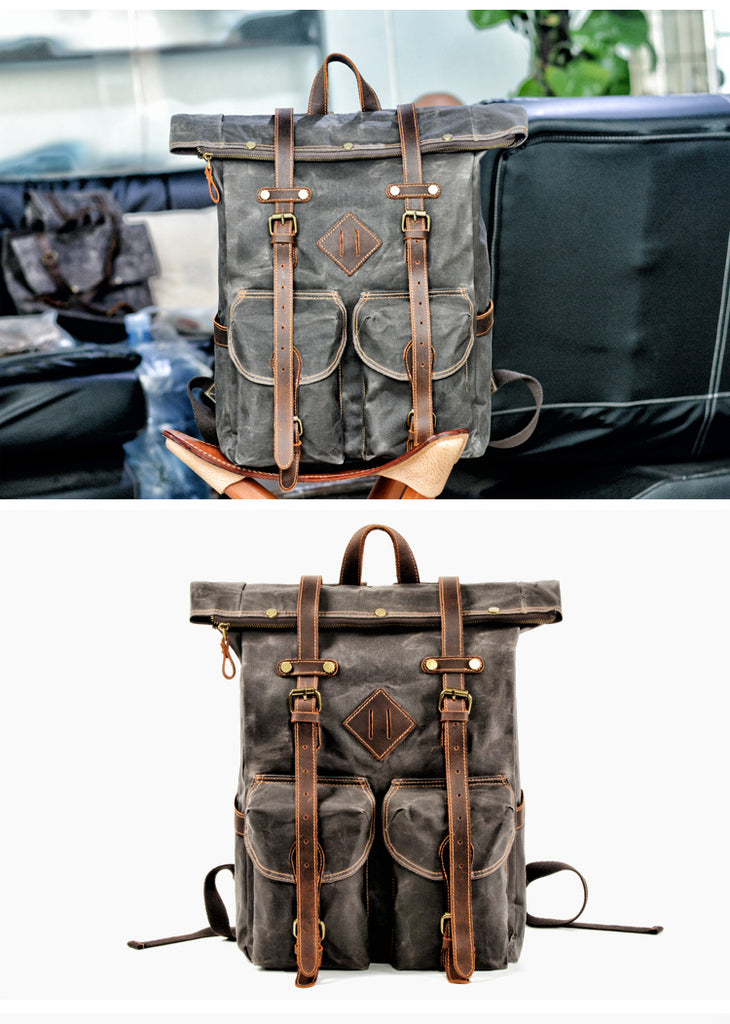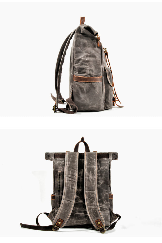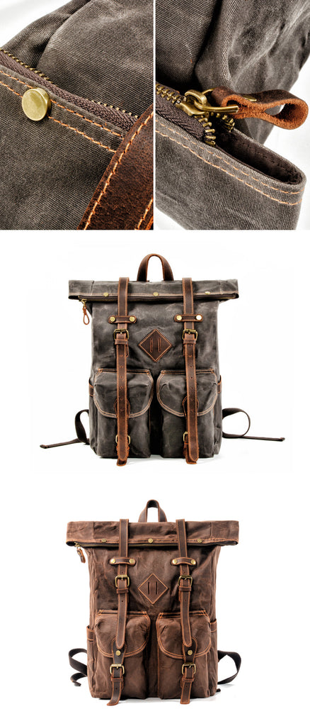 Design: Brown Waxed Canvas Mens Waterproof Large Hiking Bag Travel Bag Computer Bag for Men