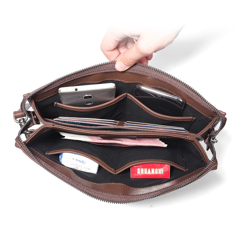 Design: Business Leather Mens Dark Brown Large Leather Wallet Wristlet Bag Black Envelope Bag Clutch Wallet for Men