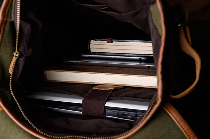 Slots: 1 zipper slot, 1 pad slot, 1 book slot, 1 wallet slots, 1 phone slot