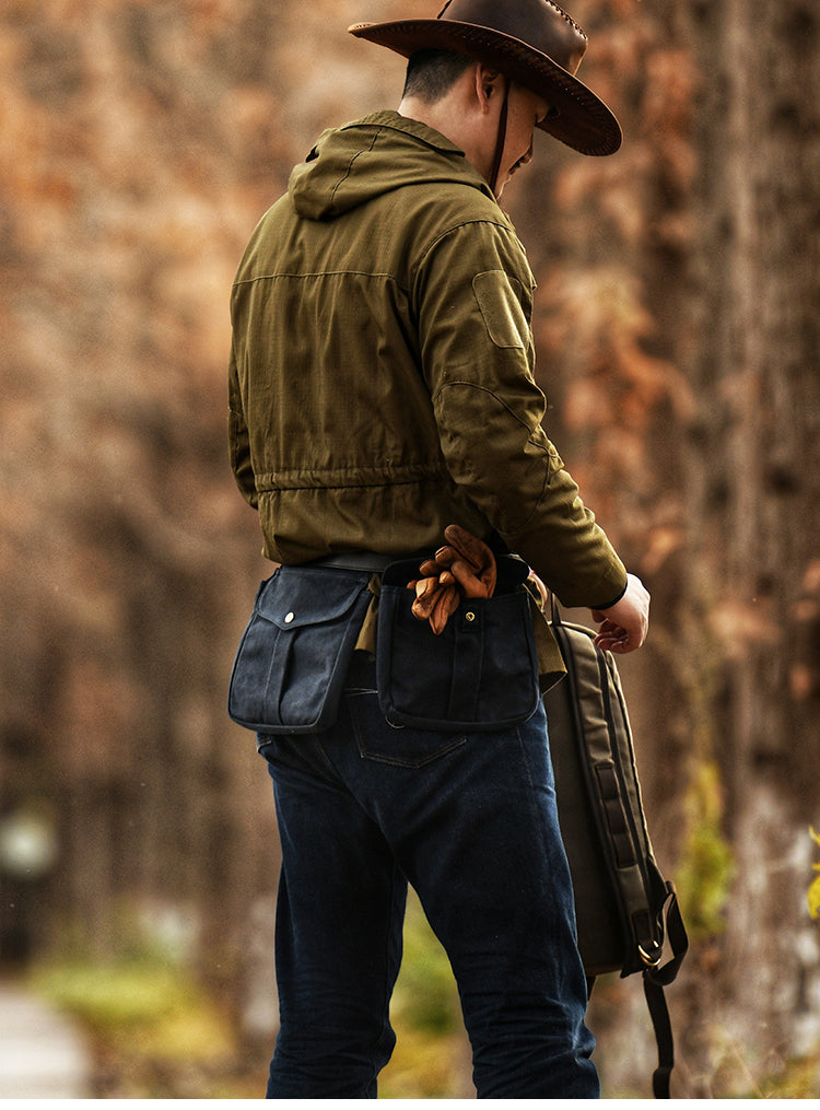 The Canvas Men's Tools Waist Pouches are not just a practical accessory; they're a statement of efficiency and style for the modern man. Crafted from durable canvas in three versatile colors – navy, army green, and khaki – these pouches are designed to withstand the rigors of everyday use.
