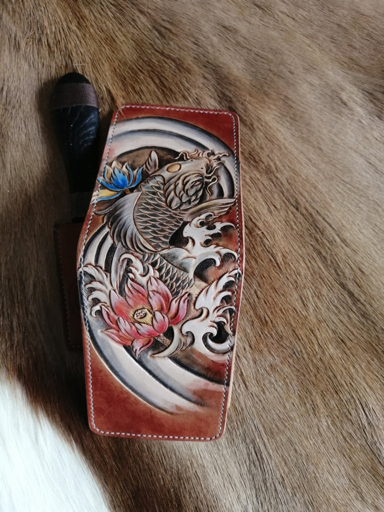 Carp Tooled Leather Wallet Card Wallet with ID Window Koi ID Holder Wallet