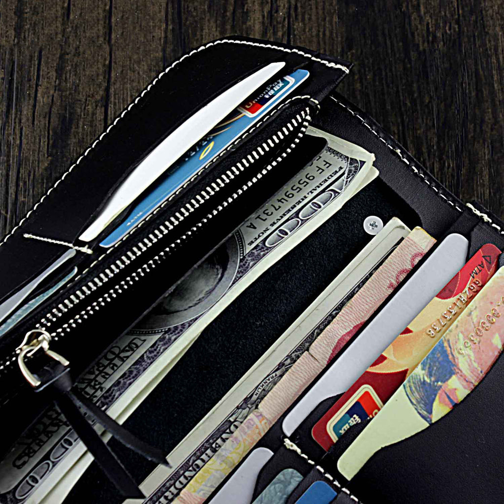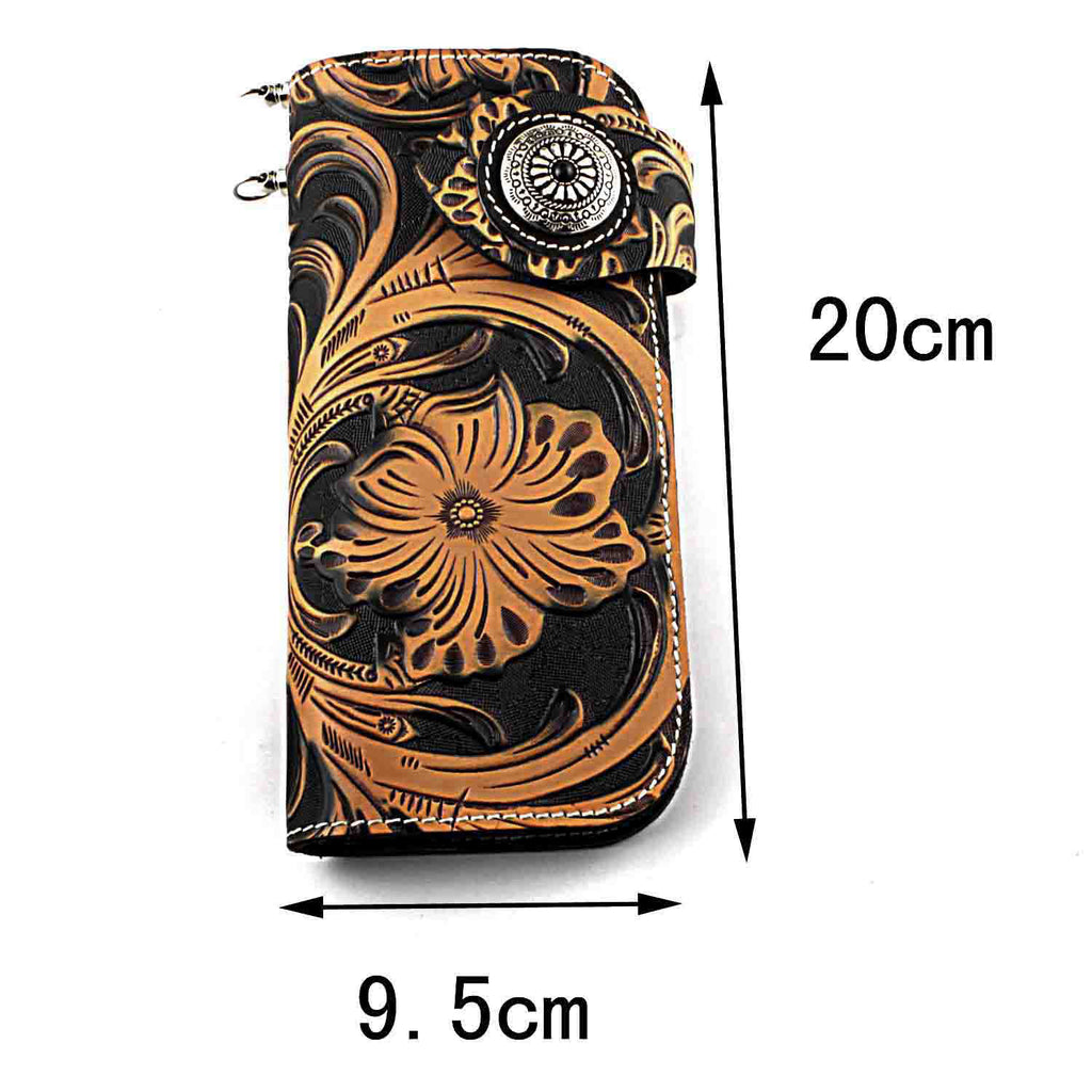 Style: Badass Black Leather Men's Long Biker Chain Wallet Tooled Long Wallet with Chain For Men
