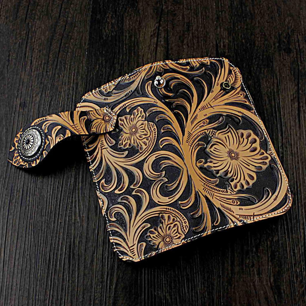 Design: Badass Black Leather Men's Long Biker Chain Wallet Tooled Long Wallet with Chain For Men
