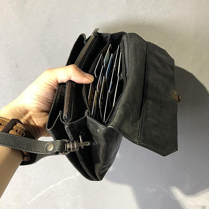 Design: CASUAL BLACK LEATHER MEN'S 8 INCHES MIni Horizontal Side Bag MESSENGER BAG BLACK PHONE Courier BAG FOR MENOverview: