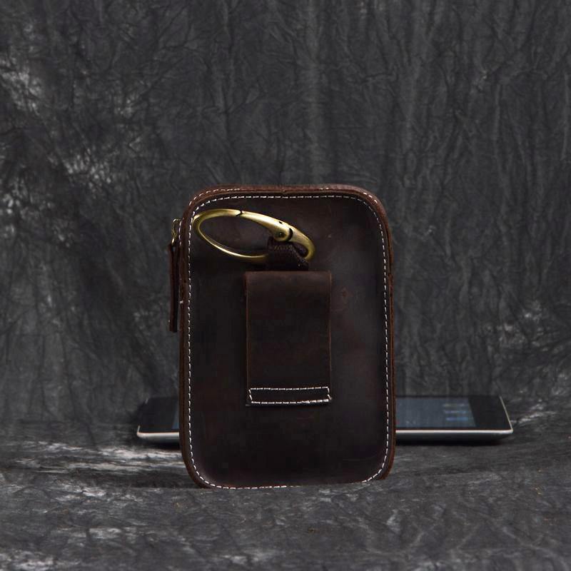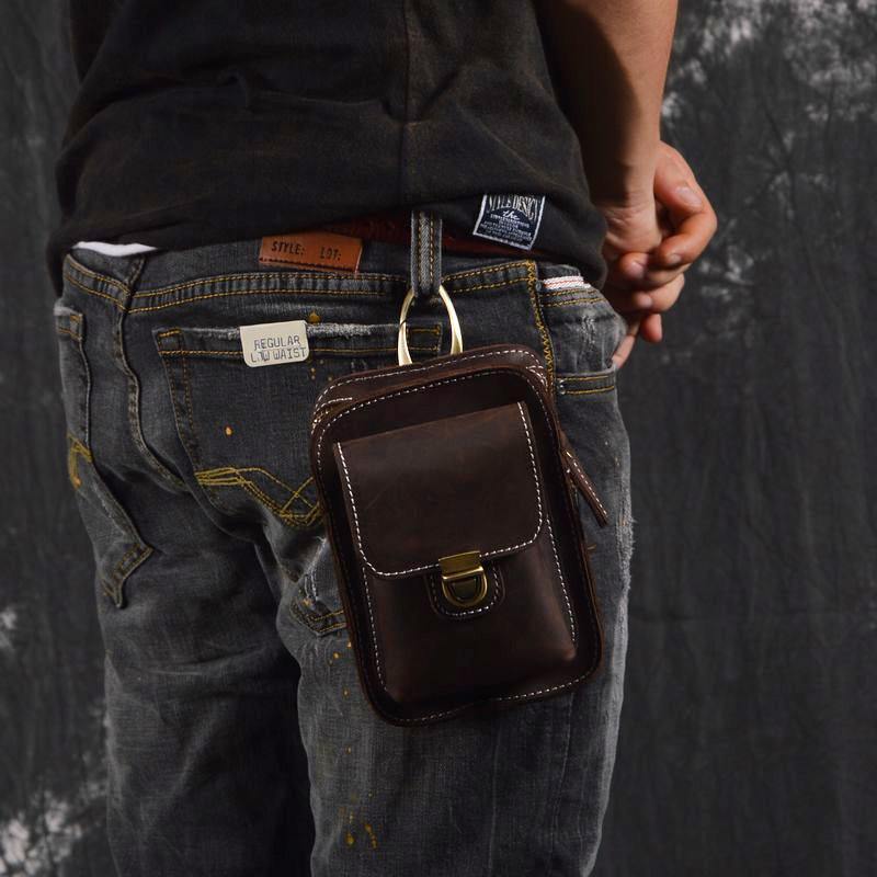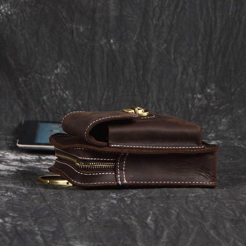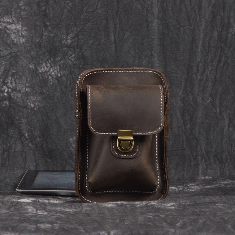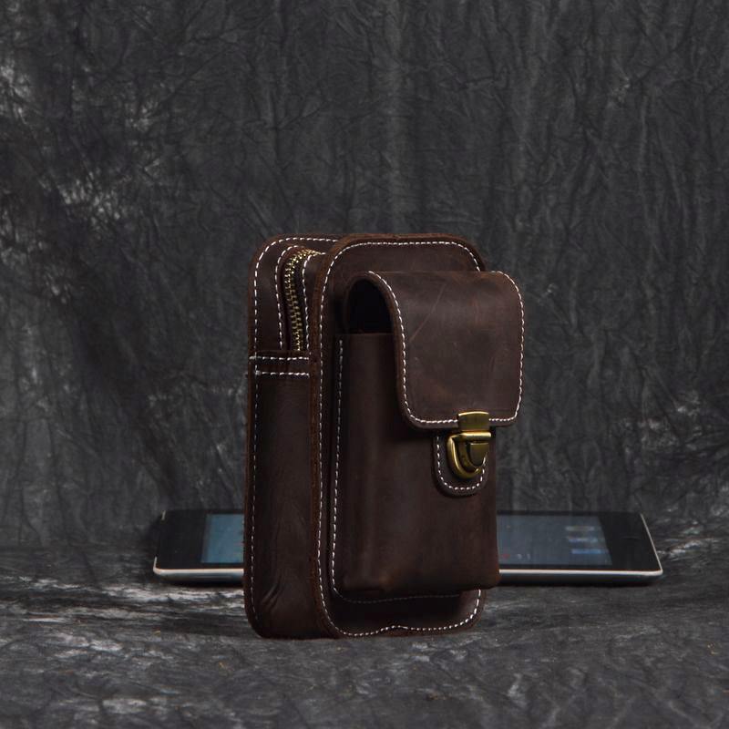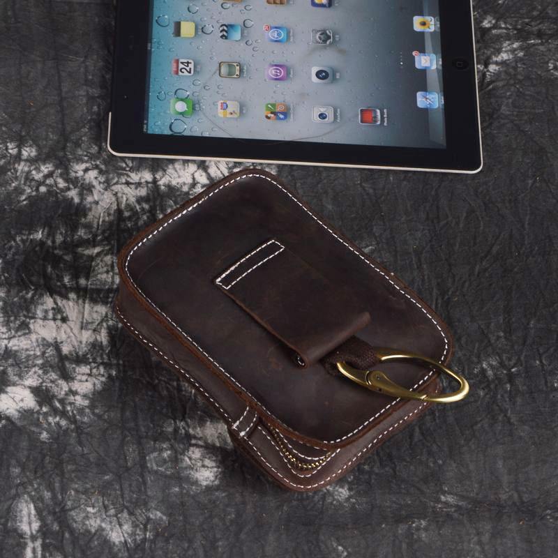 Design: Casual Brown Leather Cigarette Bag Holster Waist Pouches Dark Brown Belt Pouch Belt Bag For Men