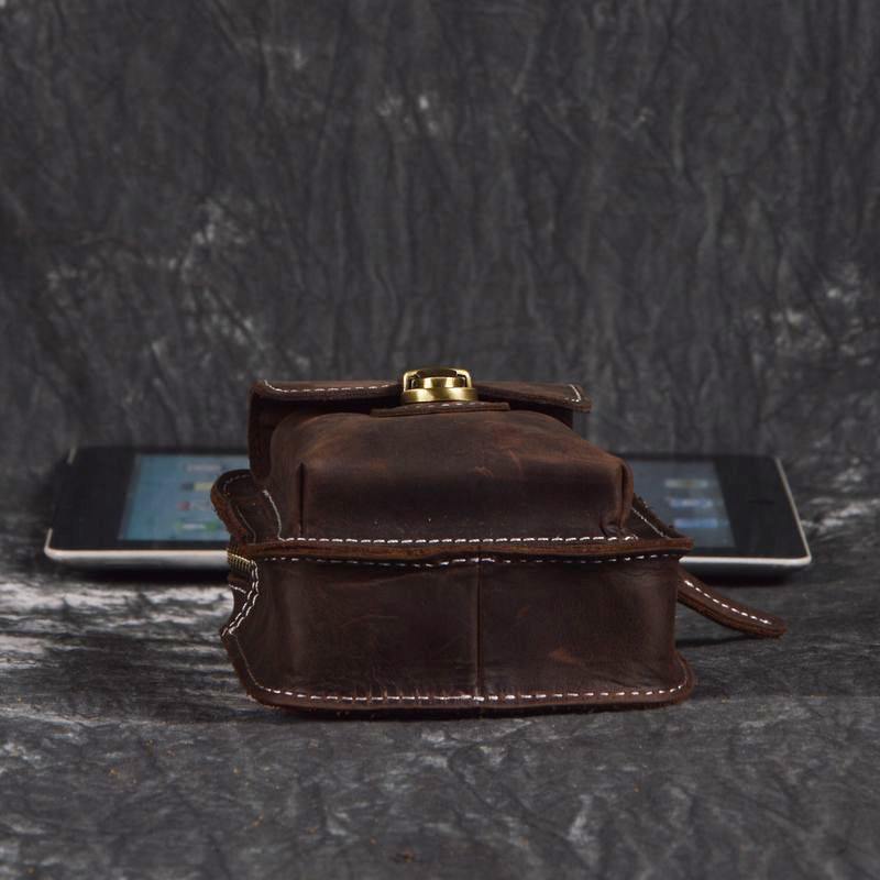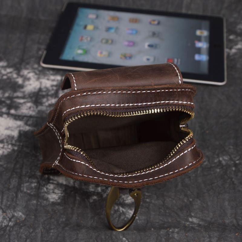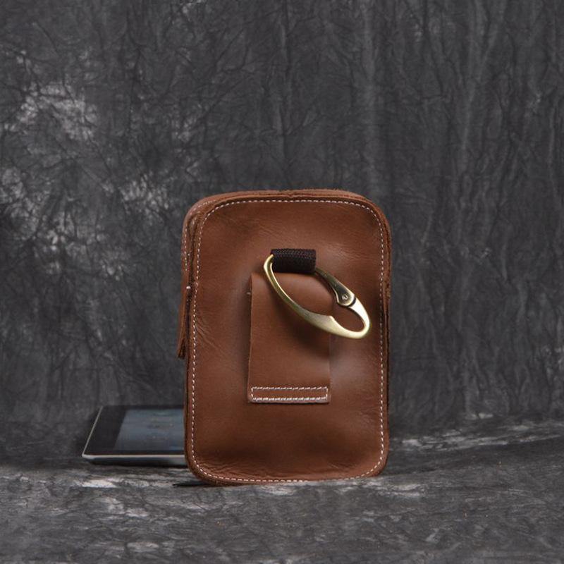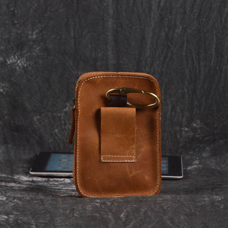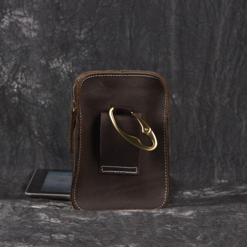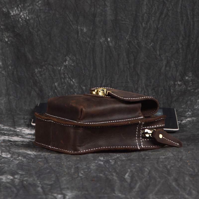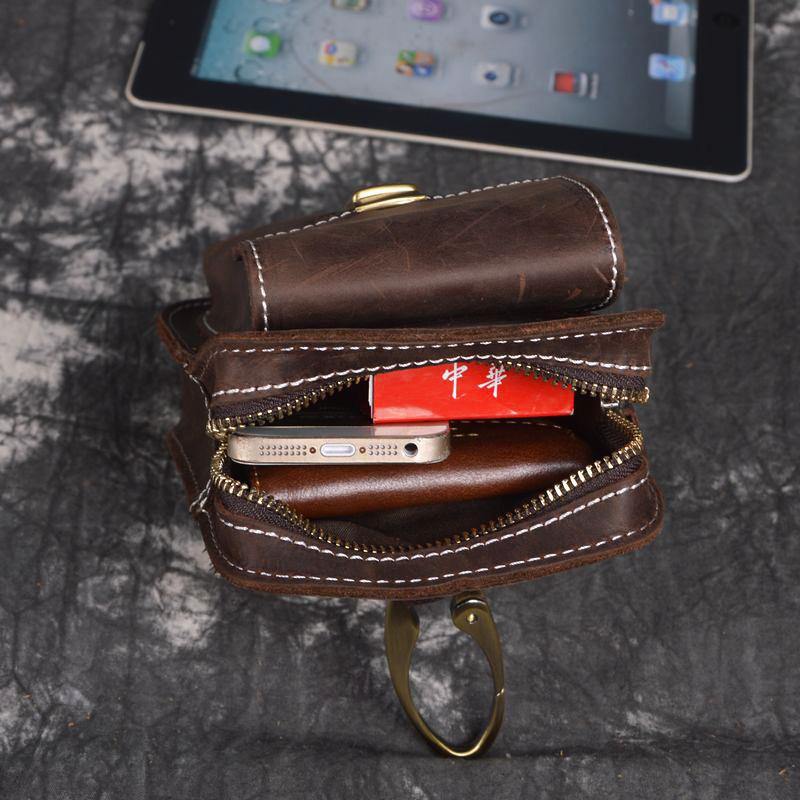 Design: Casual Brown Leather Cigarette Bag Holster Waist Pouches Dark Brown Belt Pouch Belt Bag For Men