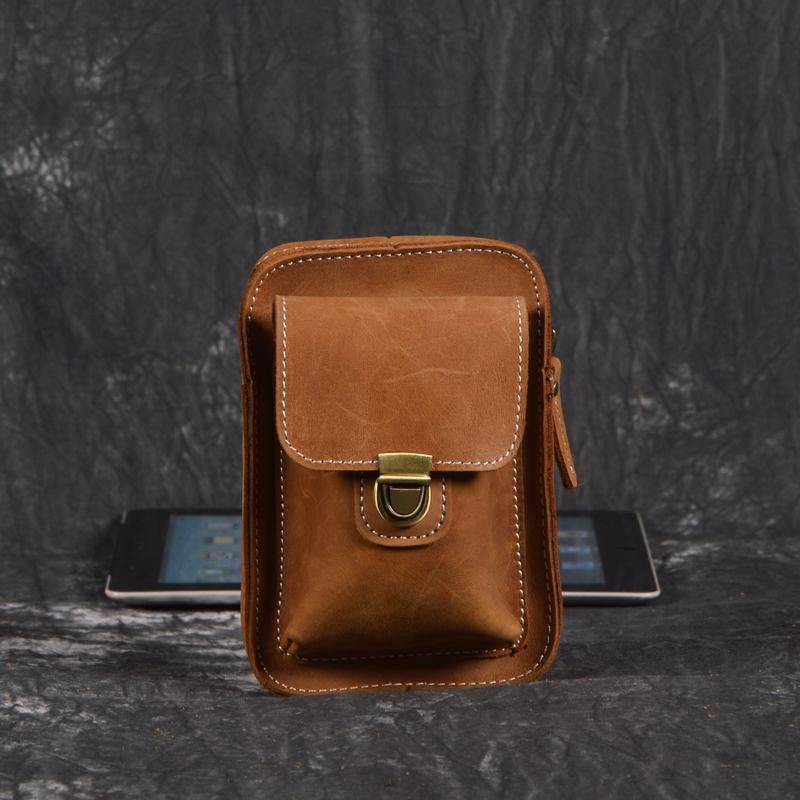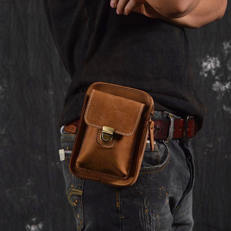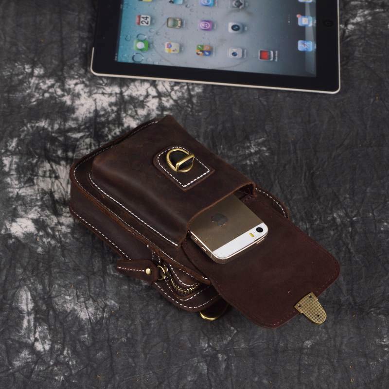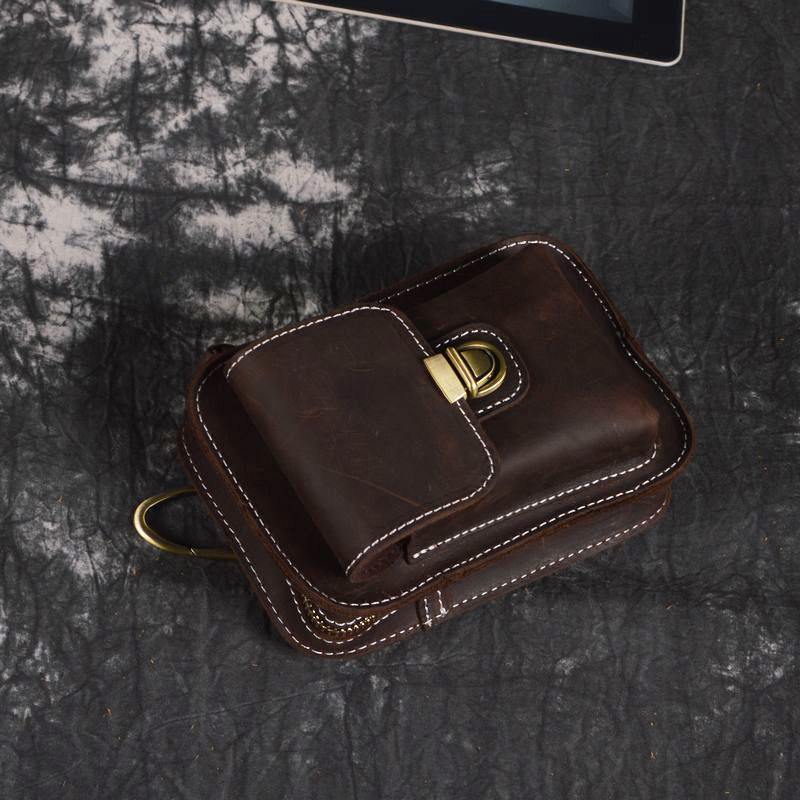 Design: Casual Brown Leather Cigarette Bag Holster Waist Pouches Dark Brown Belt Pouch Belt Bag For MenOverview: