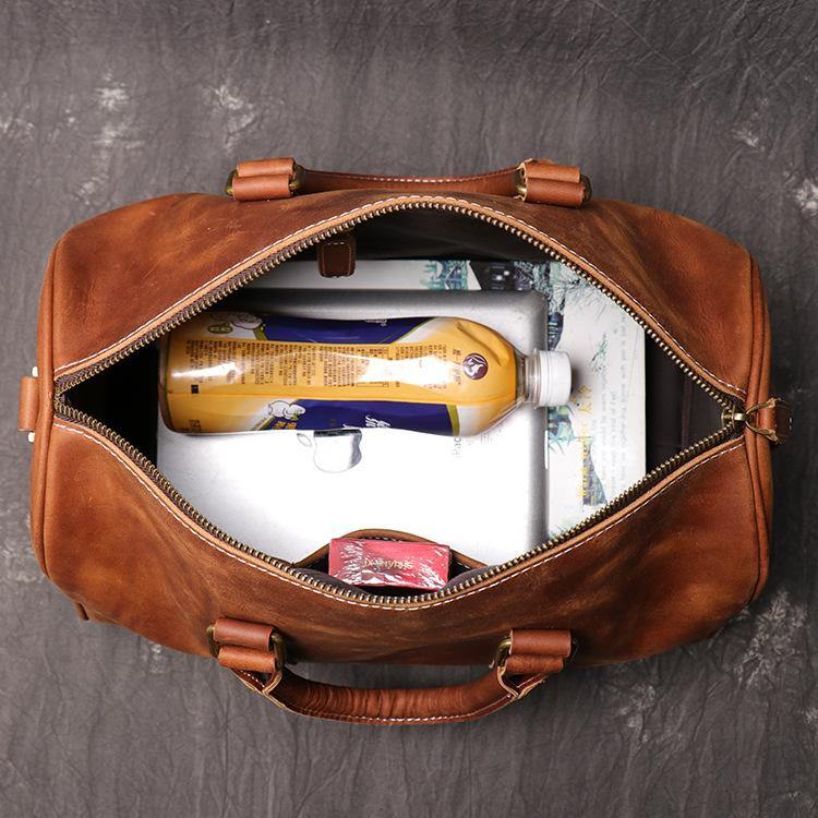 Design: Casual Brown Leather Men's 12 inches Overnight Bag Travel Bag Luggage Weekender Bag For MenOverview: