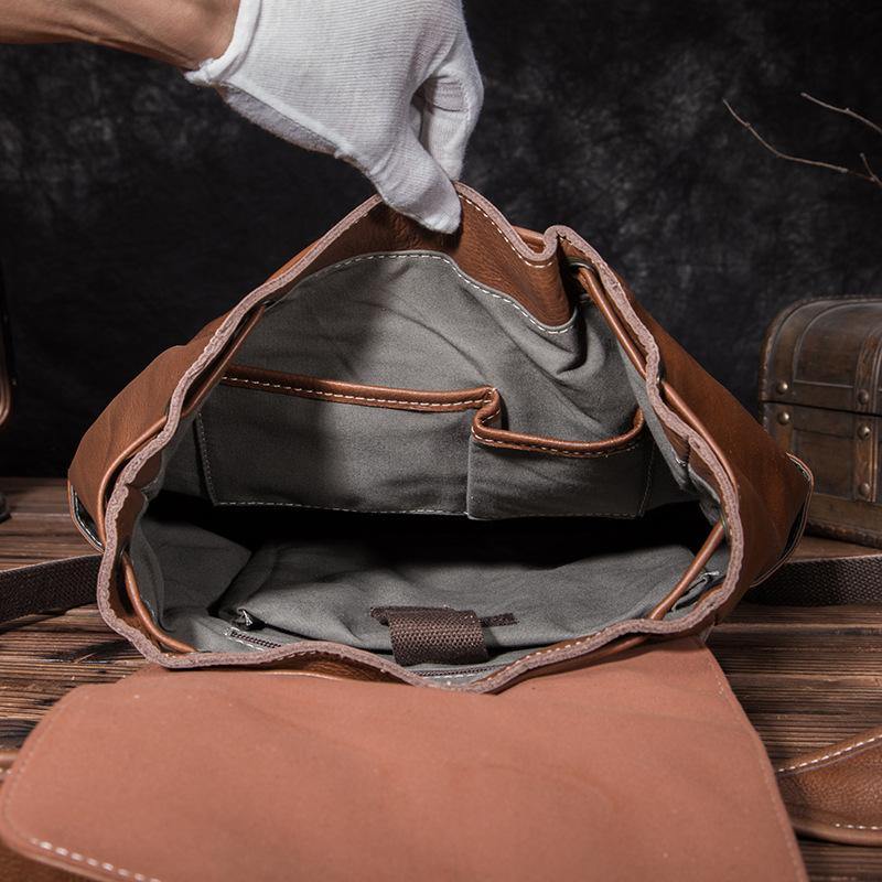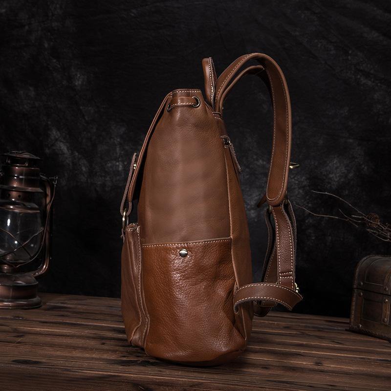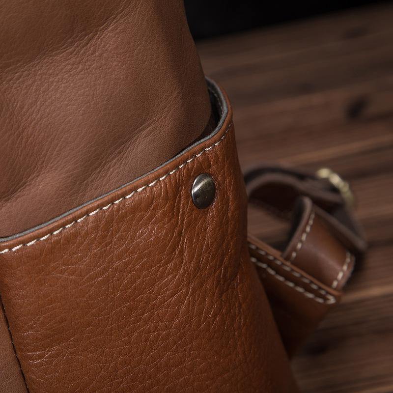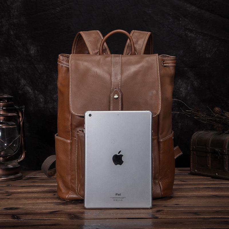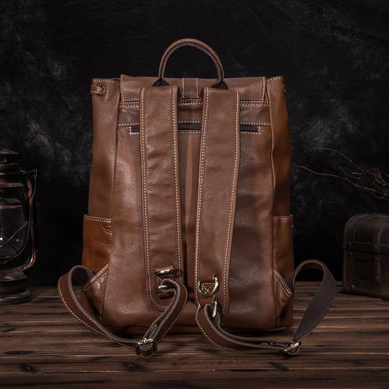 Design: Top Brown Leather Men's Satchel Backpack Computer Backpack 14 inches School Backpack For Men
