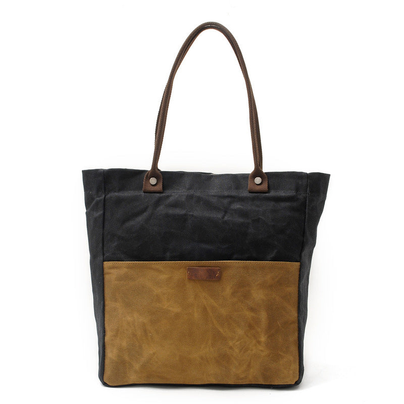 Casual Canvas Leather Black Ladies Mens Shopping Bag Tote Bag Shoulder Bag Tote Purse For Women