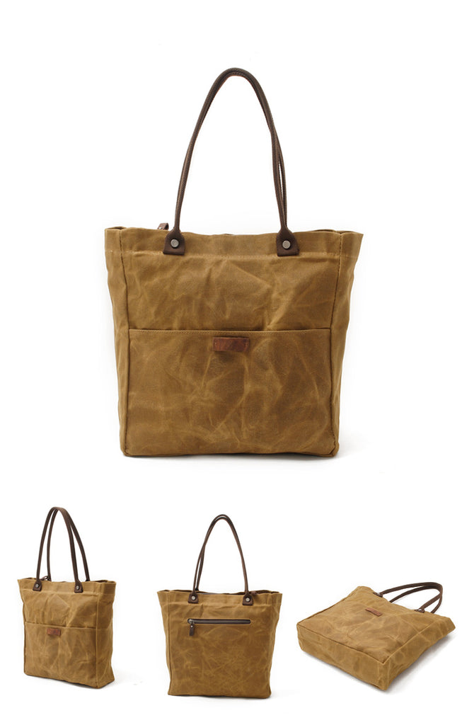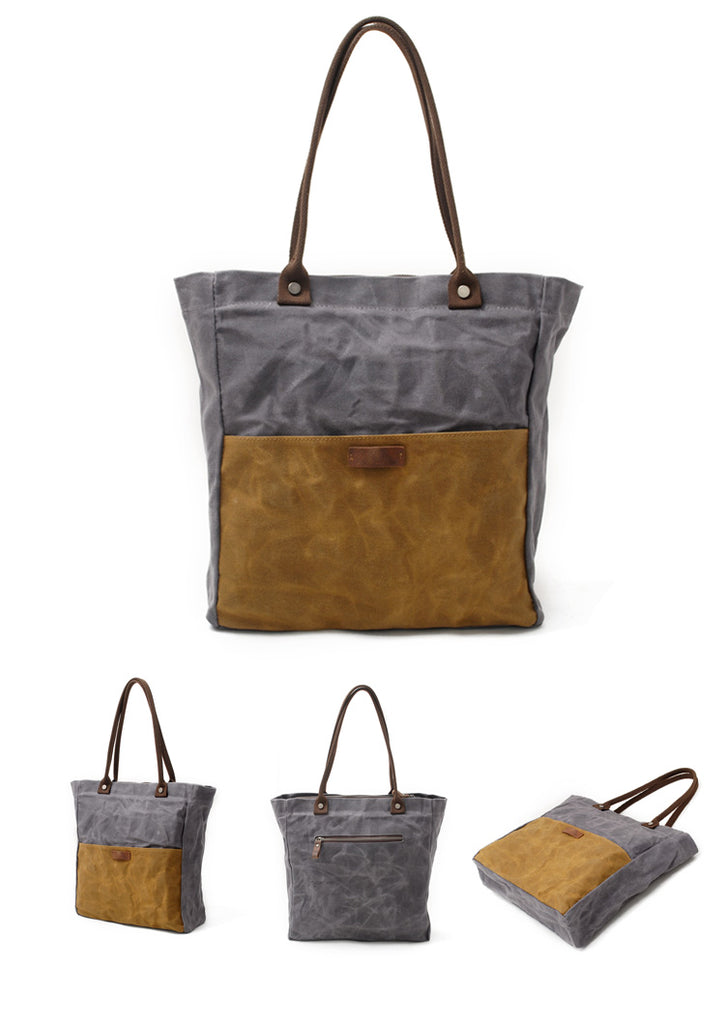 Style: Casual Canvas Leather Ladies Mens Portable Shopping Bag Tote Bag Shoulder Bag Tote Purse For Women