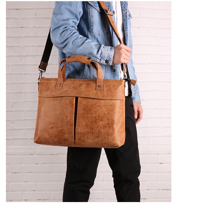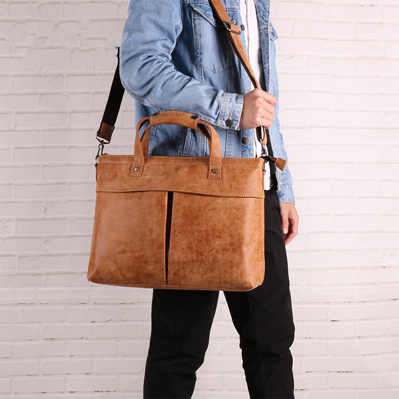 Design: Vintage Fashion Leather Mens 13inch Briefcase Laptop Shoulder Bag Business Bag Handbag For MenOverview: