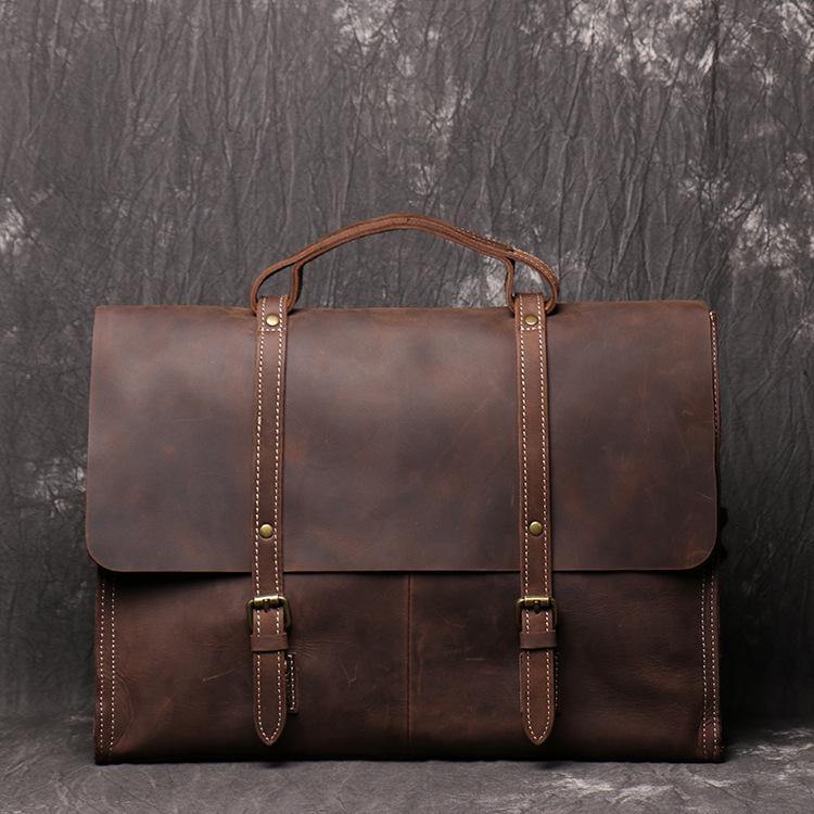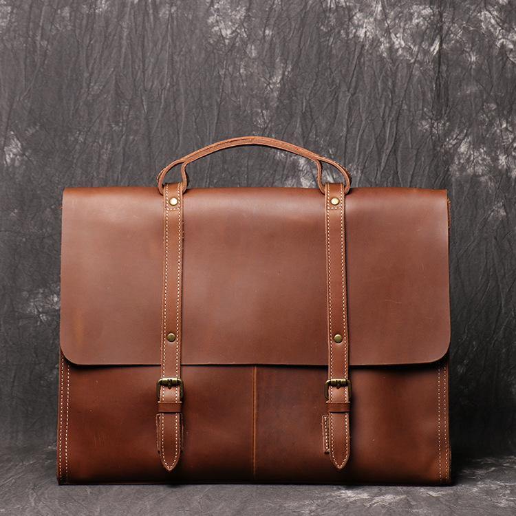 Design: Casual Leather Men's Brown Professional Briefcase 15‘’ Laptop Handbag Business Bag For Men