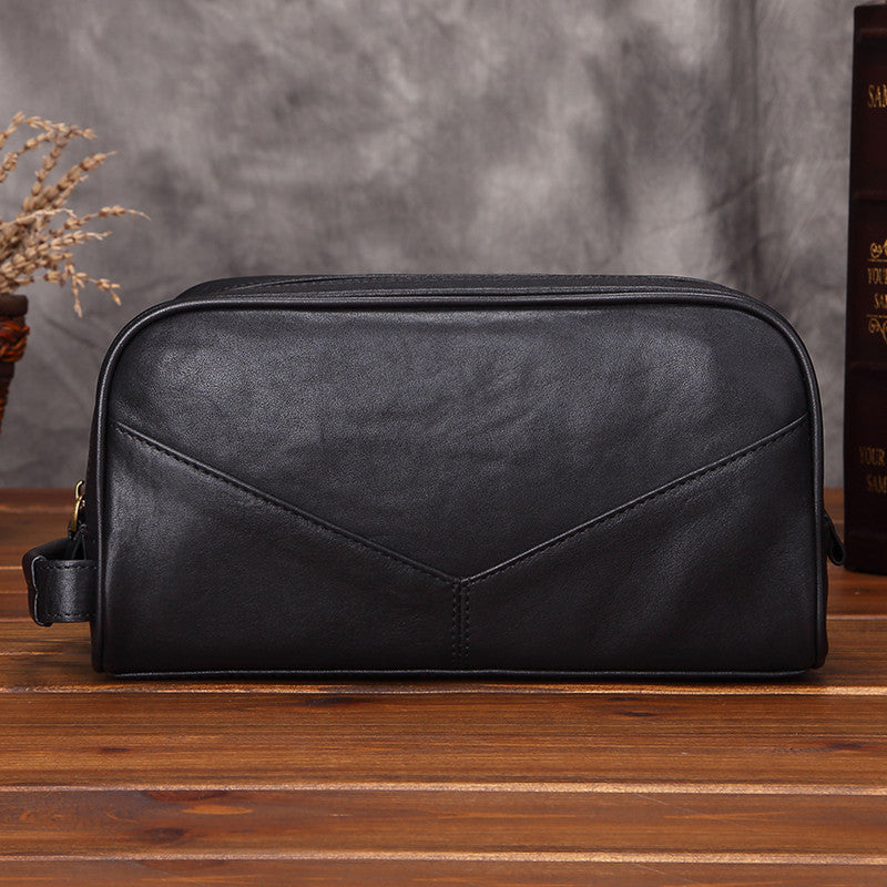 Style: Casual Black Leather Men's Wristlet Bag Double Zipper Clutch Bag For Men