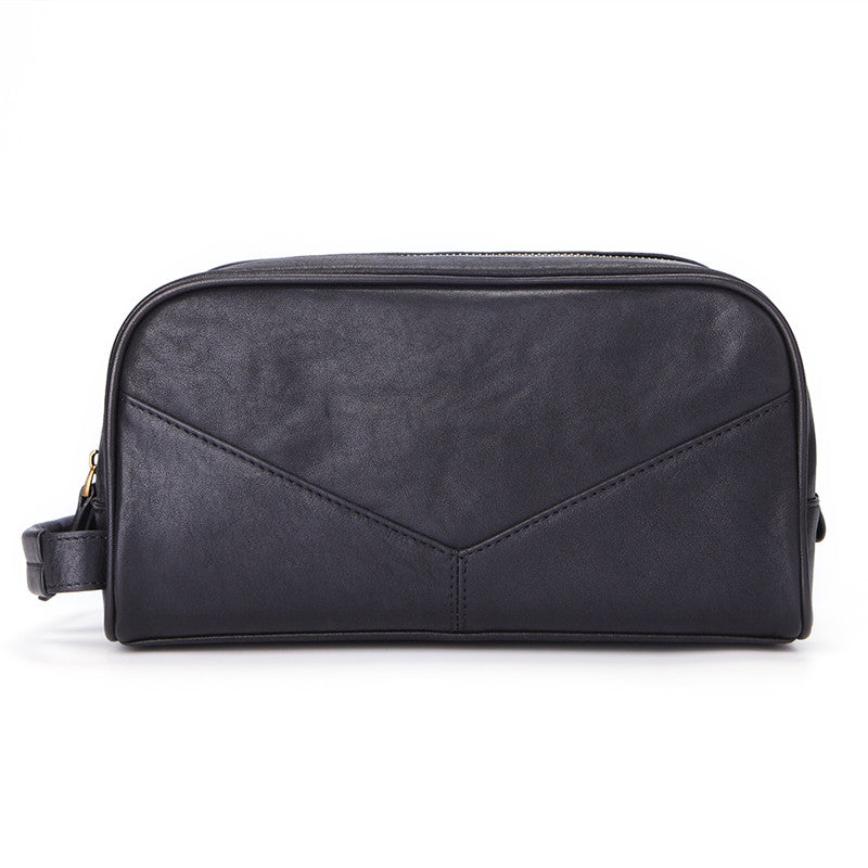 Design: Casual Black Leather Men's Wristlet Bag Double Zipper Clutch Bag For Men