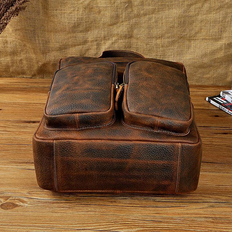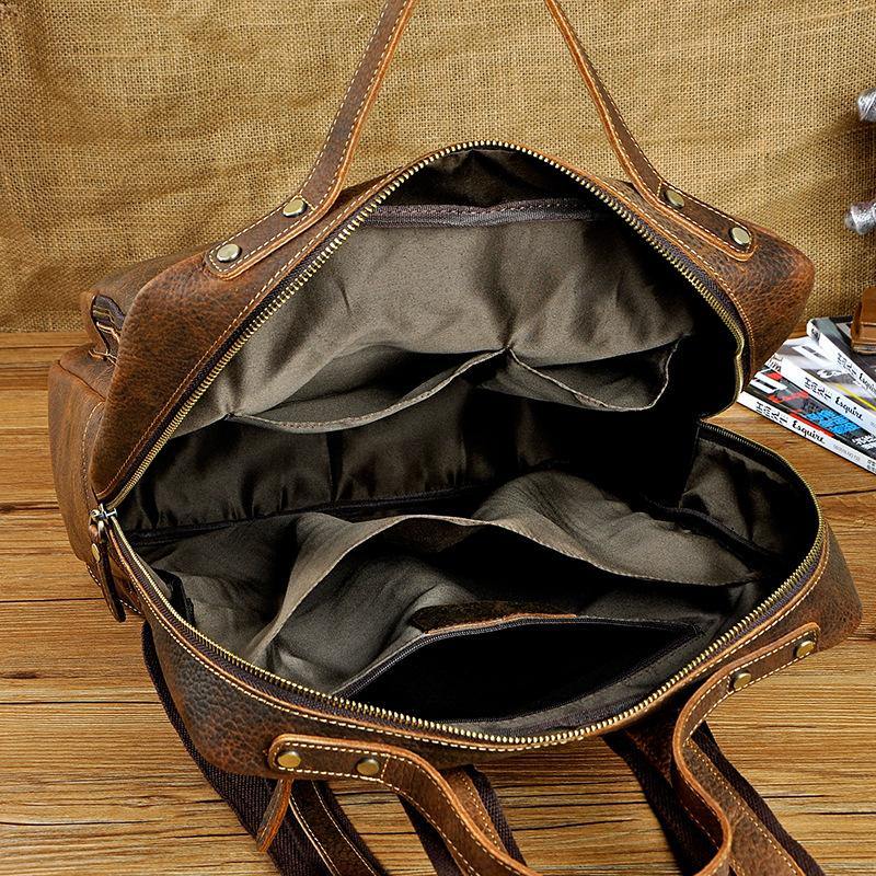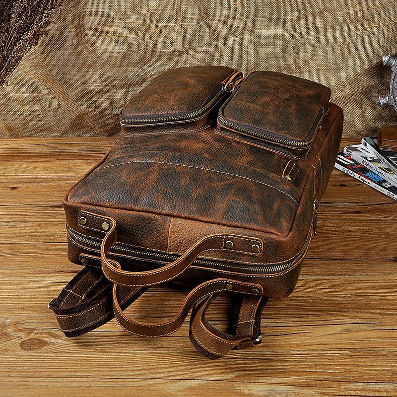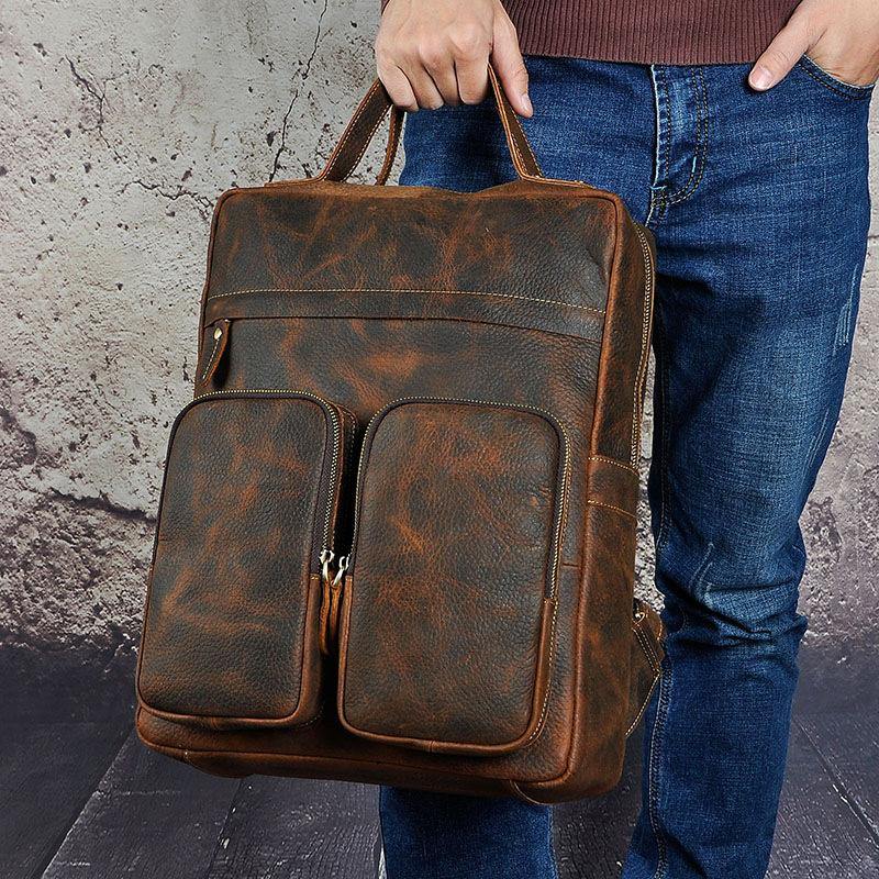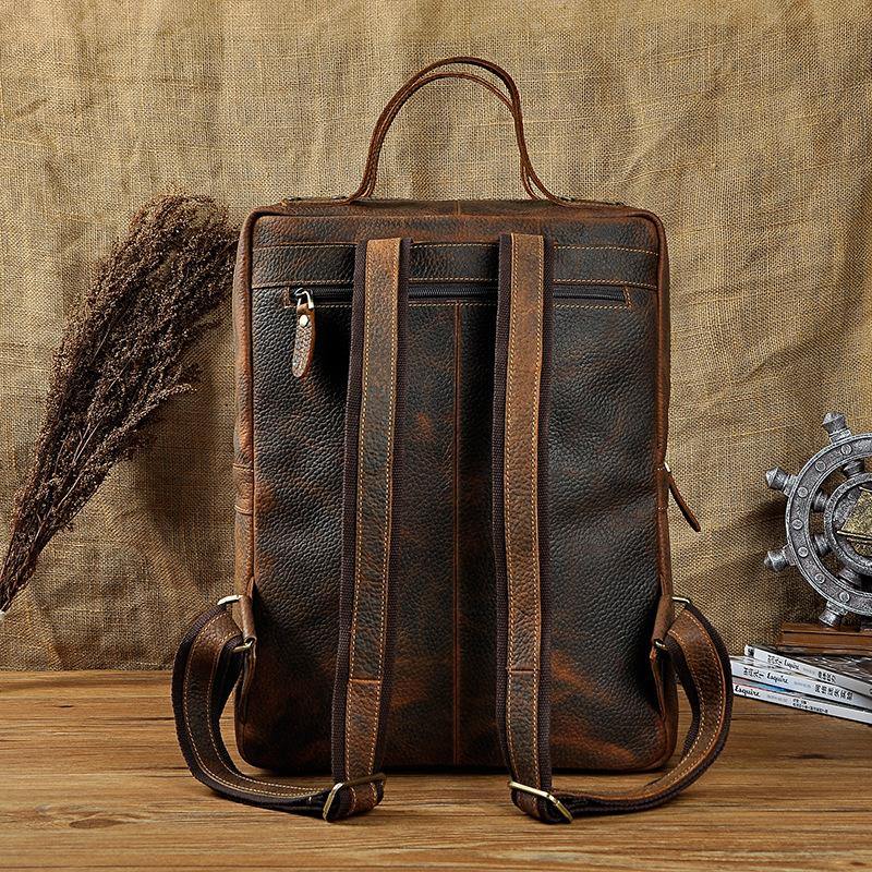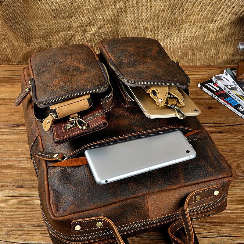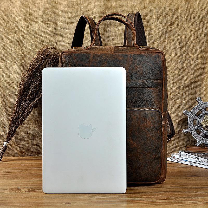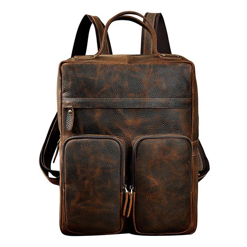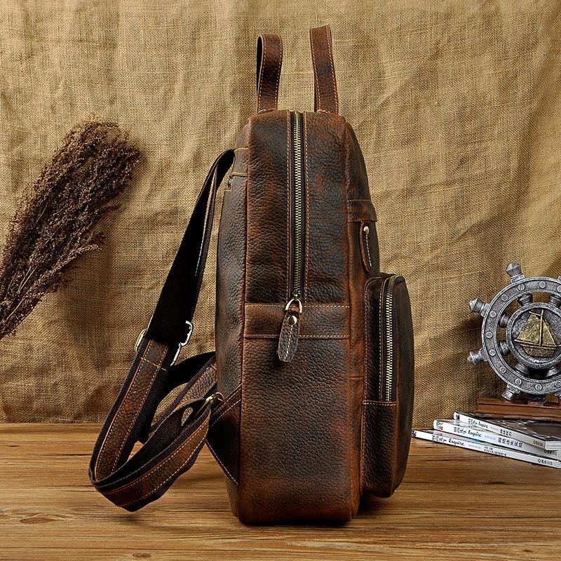 Design: Casual Red Brown Leather Men's 15 inches Side Courier Bag Bag Computer Backpack School Backpack For MenOverview: