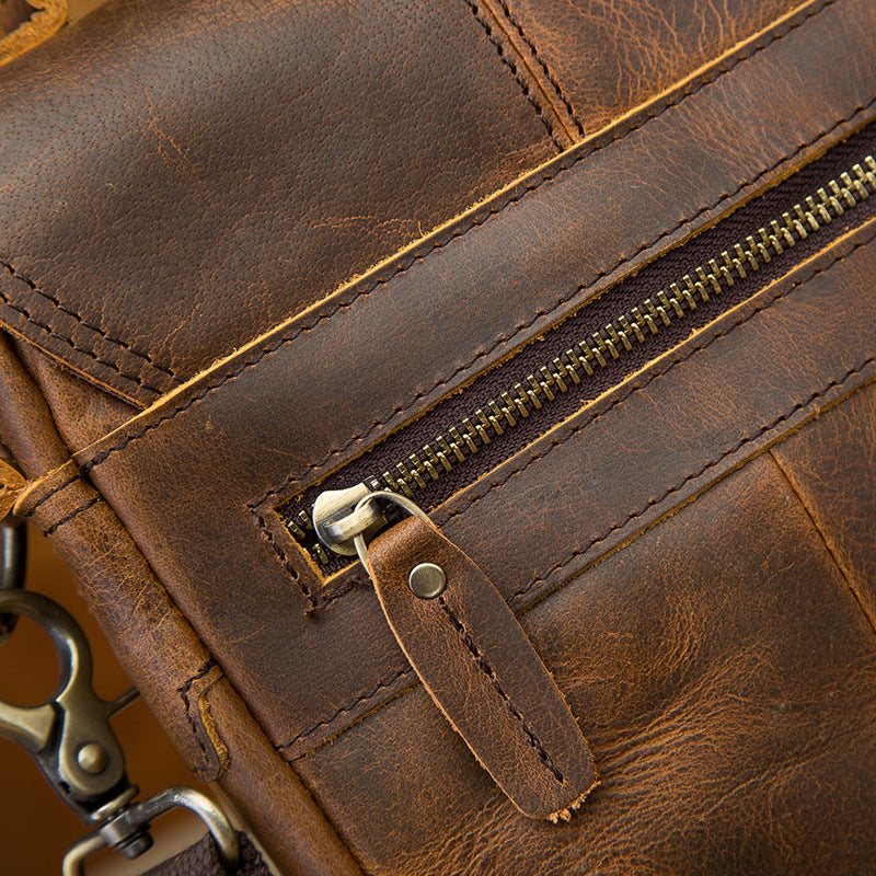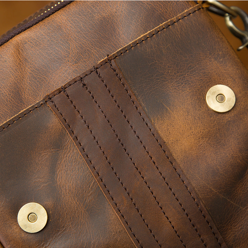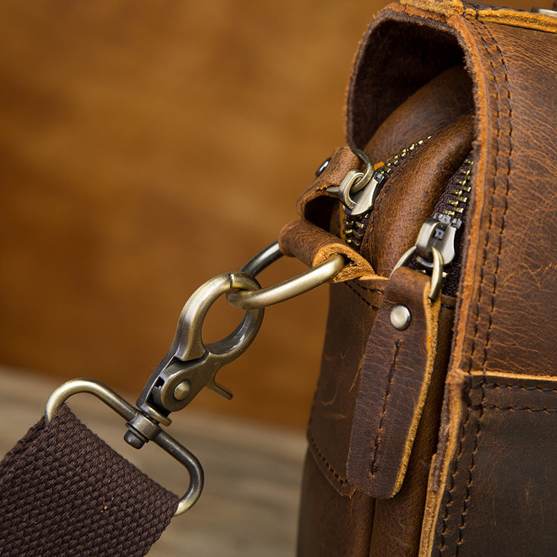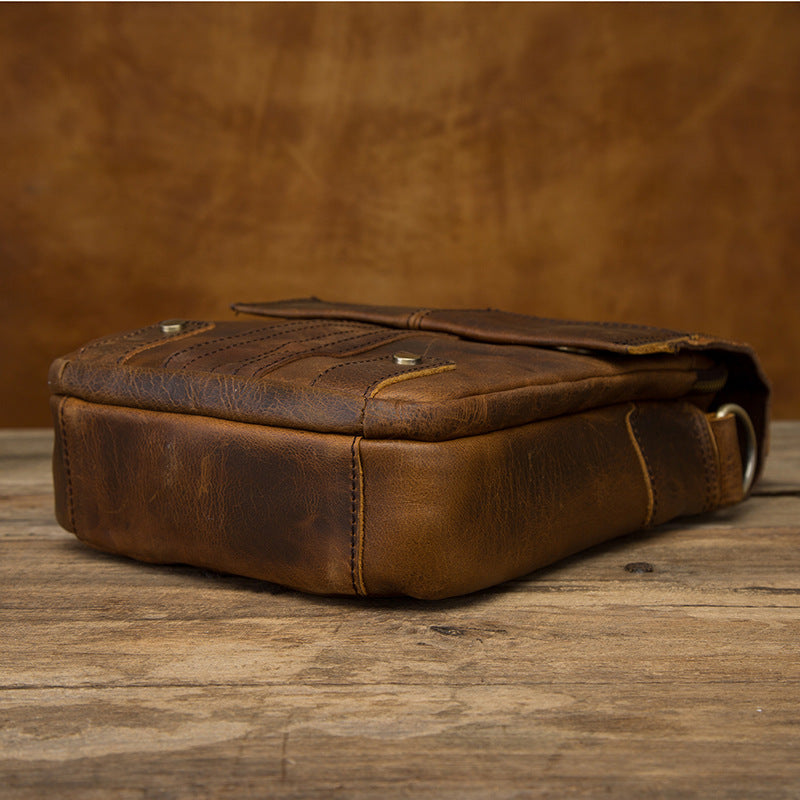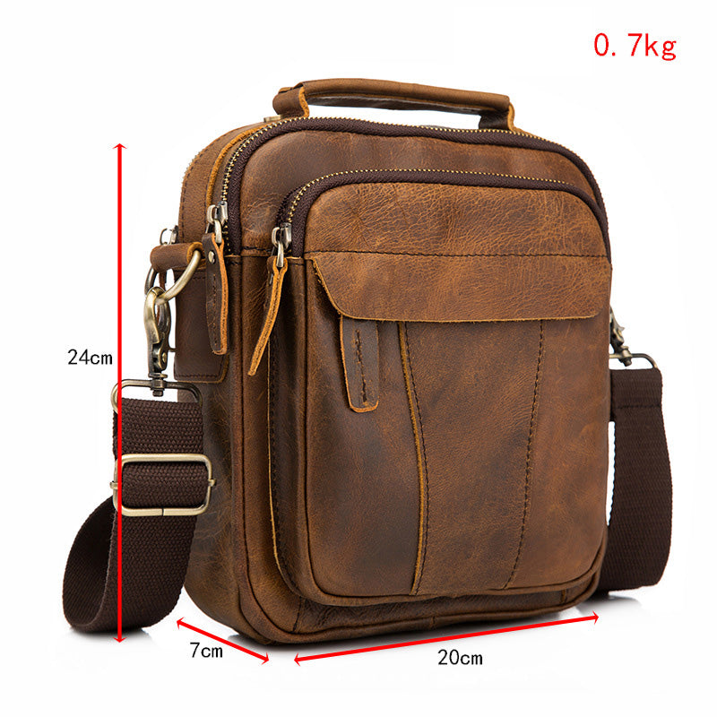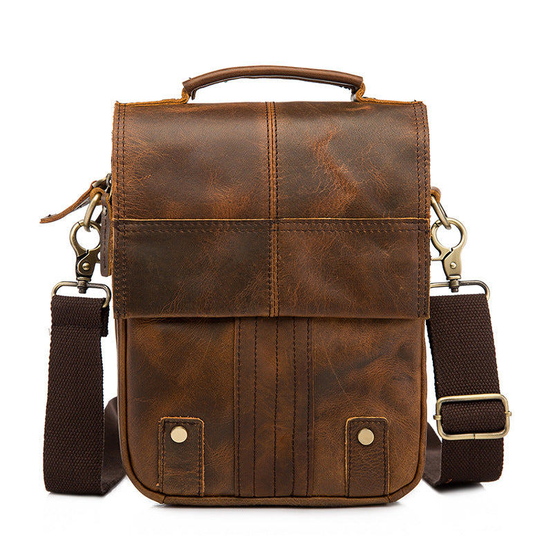 Design: Vintage Brown Leather Mens Small Vertical Side Bags Courier Bag Messenger Bag For Men
