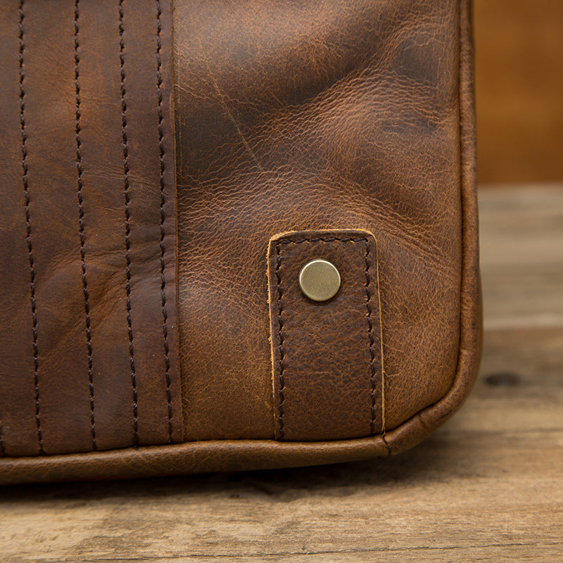 Design: Vintage Brown Leather Mens Small Vertical Side Bags Courier Bag Messenger Bag For MenOverview: