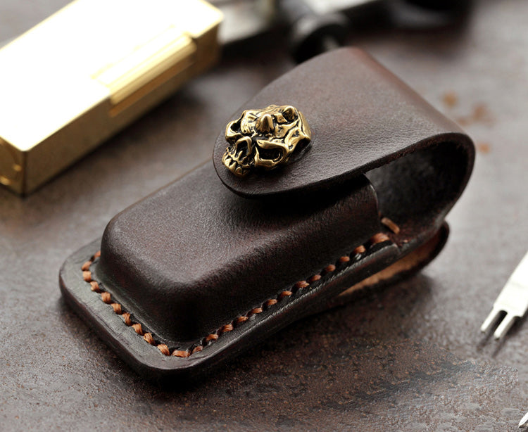 Style: Chocolate Handmade Leather Mens Dunhill Lighter Case With Belt Loop Cool Standard Lighter Holders For Men