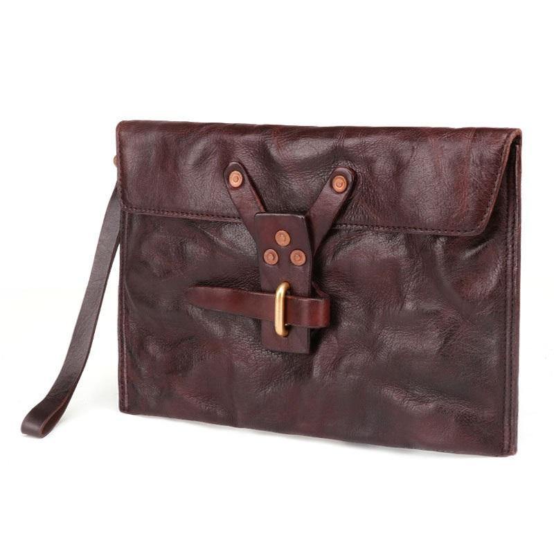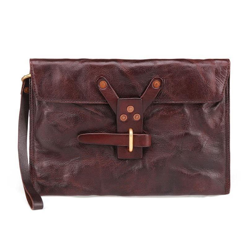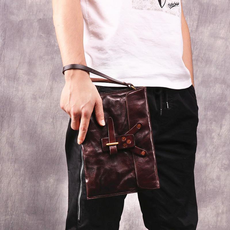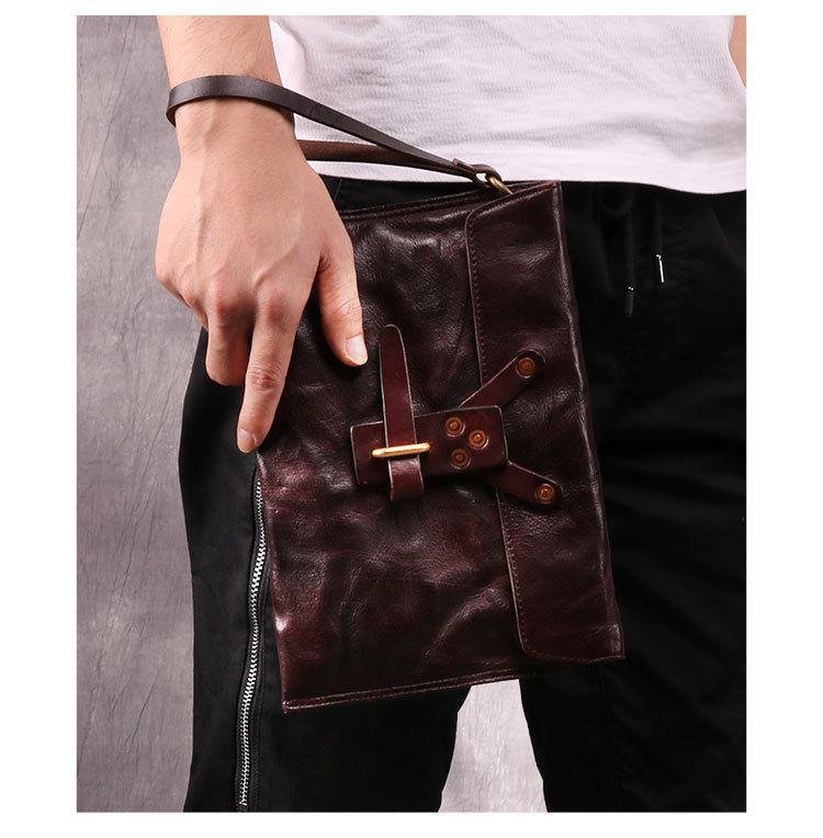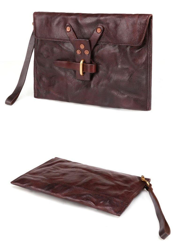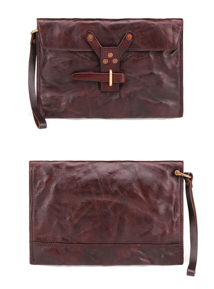 Style: Chocolate Leather Mens 8 inches Wristlet Wallet Bag Zipper Clutch Wallet For Men