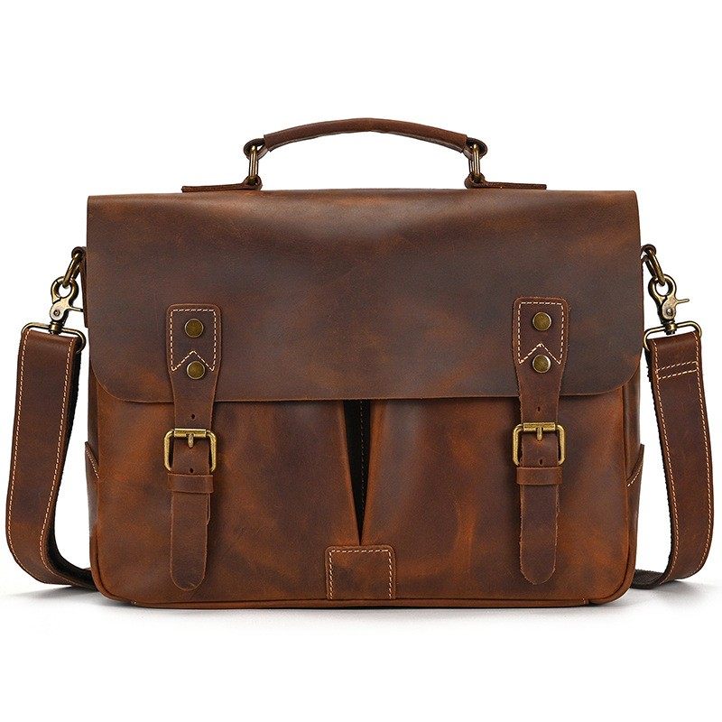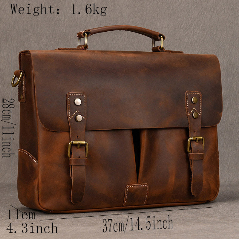 Design:  Classic Leather Briefcase for Men Brown Leather 14 inches Laptop Briefcase