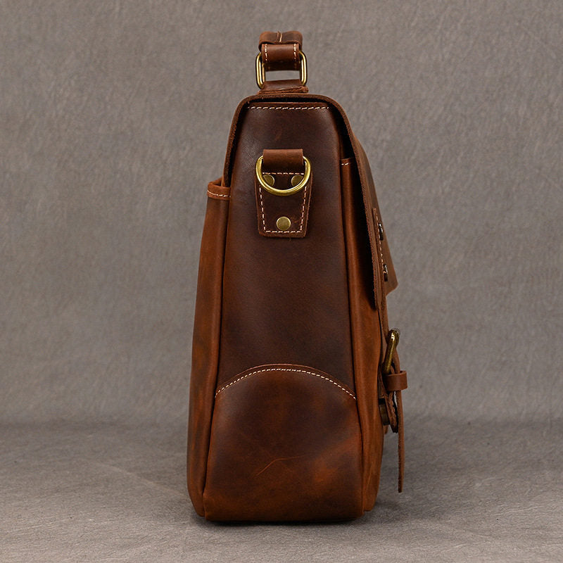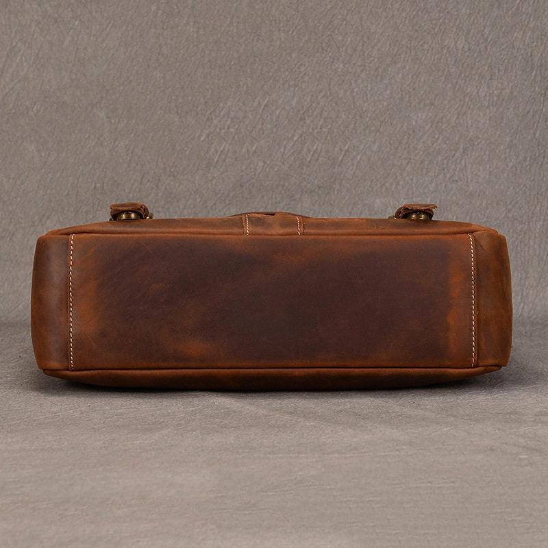 Introducing the Brown Leather Briefcase for Men, a blend of timeless elegance and modern functionality. This brown leather laptop briefcase is crafted from full-grain Italian leather, featuring a classic silhouette with a minimalist design. The front is secured by a magnetic-flap closure, providing both style and enhanced security. Beneath the flap, you'll find two spacious exterior pockets for quick access to essentials, while the main compartment is thoughtfully organized for your daily carry.