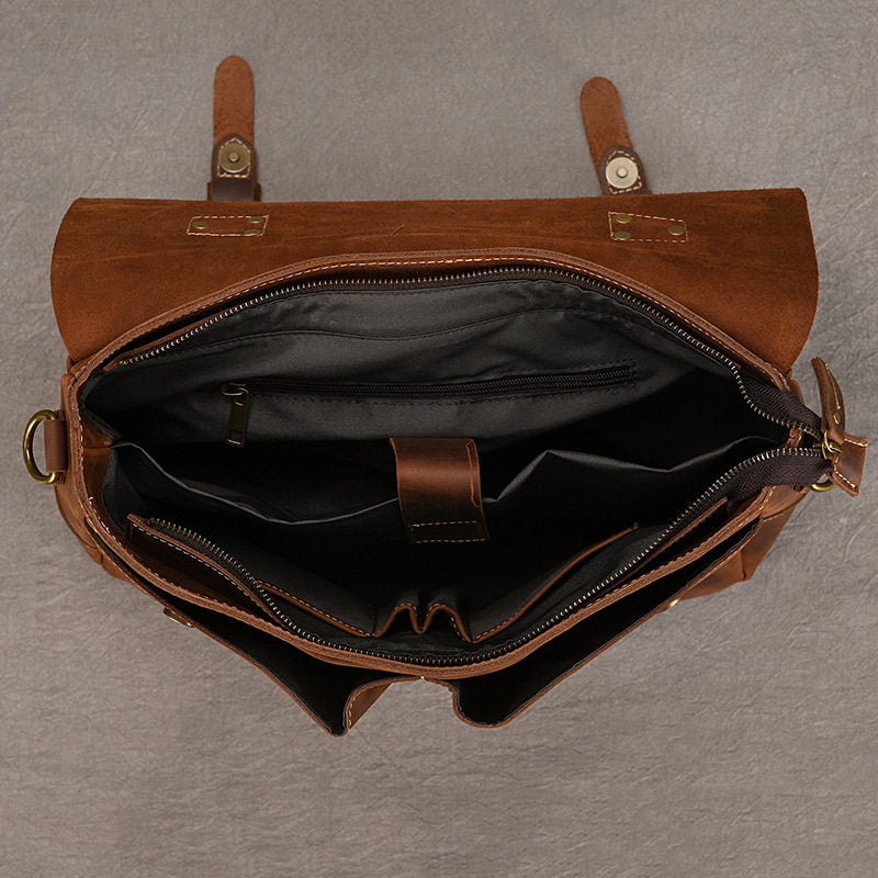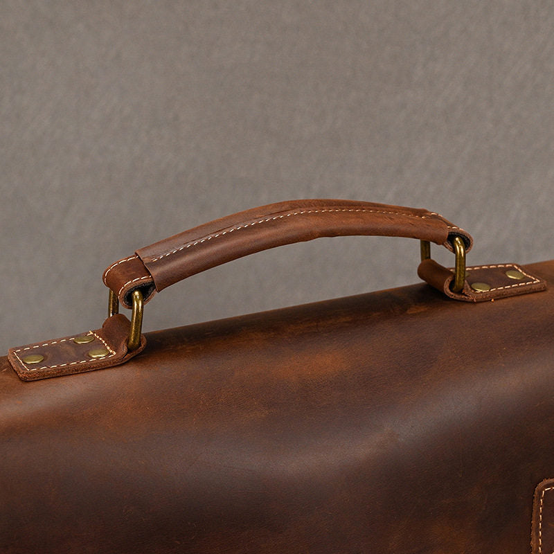 This brown leather briefcase for men isn't just a bag—it's a reliable partner for your daily journeys. Its classic design, premium materials, and intelligent organization make it an ideal choice for work, travel, or daily adventures. Whether you're carrying a laptop, tablet, documents, or personal items, this briefcase ensures everything has its place, combining sophistication with everyday practicality.