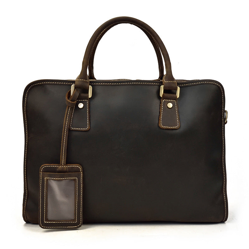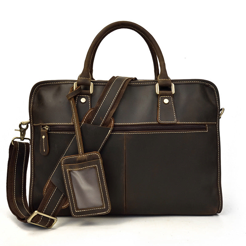 Style: Vintage Leather Brown Men's 14‘’ Laptop Briefcase Professional Briefcase Business Handbag For Men