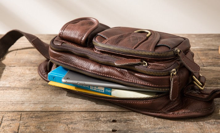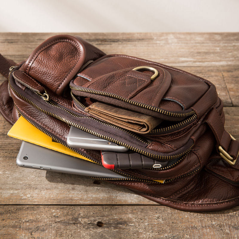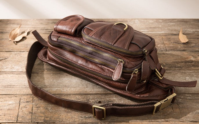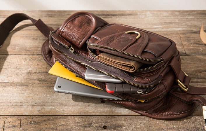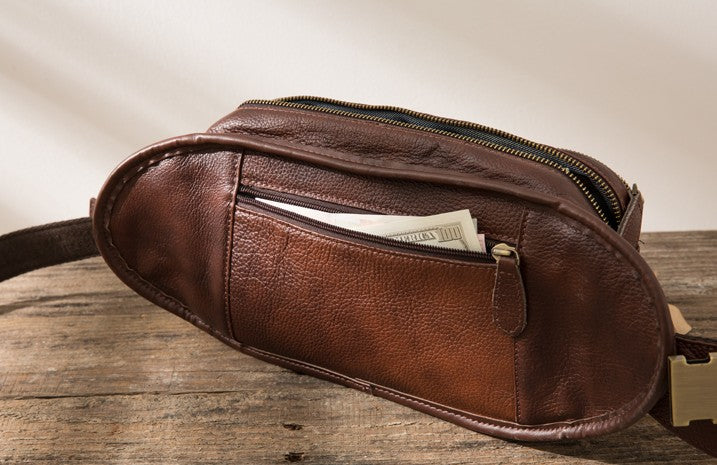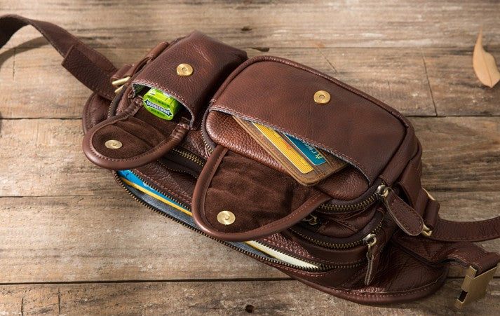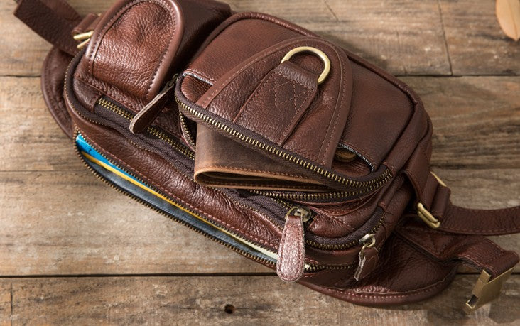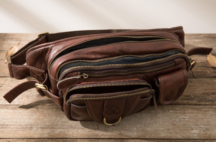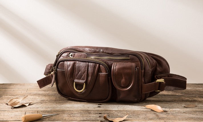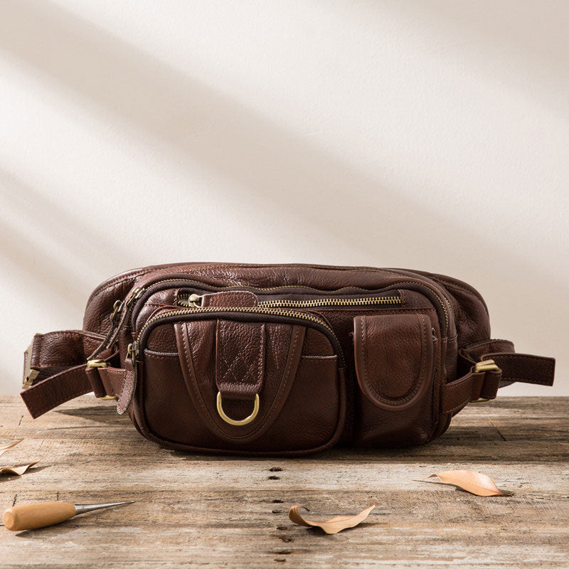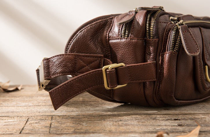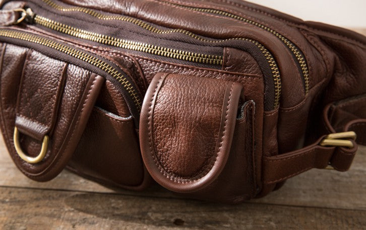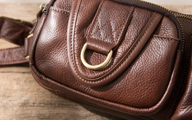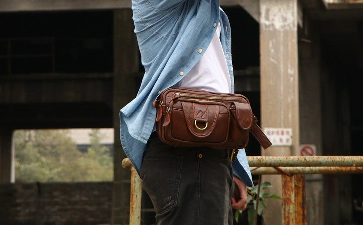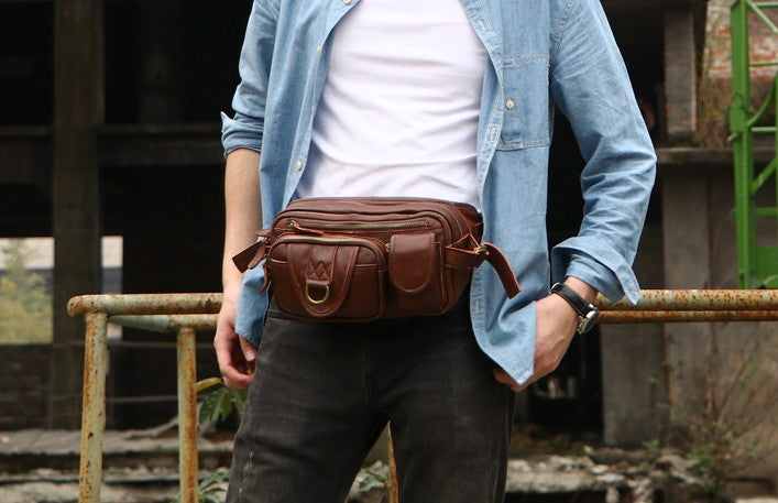 Style: Coffee Cool Leather Fanny Packs Mens Waist Bag Hip Pack Belt Bag for Men