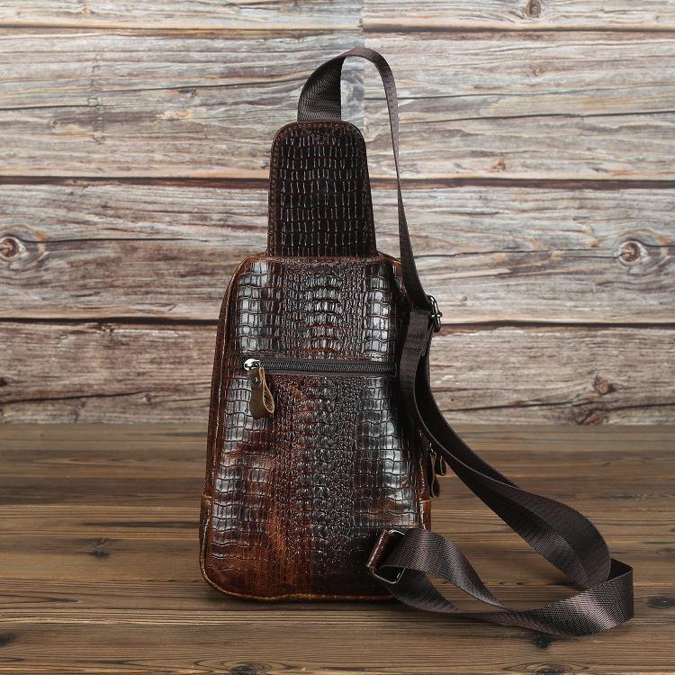 Style: Coffee Crocodile Pattern Leather Backpack Men's 8-inch Sling Bag Chest Bag One shoulder Backpack Sports Bag For Men