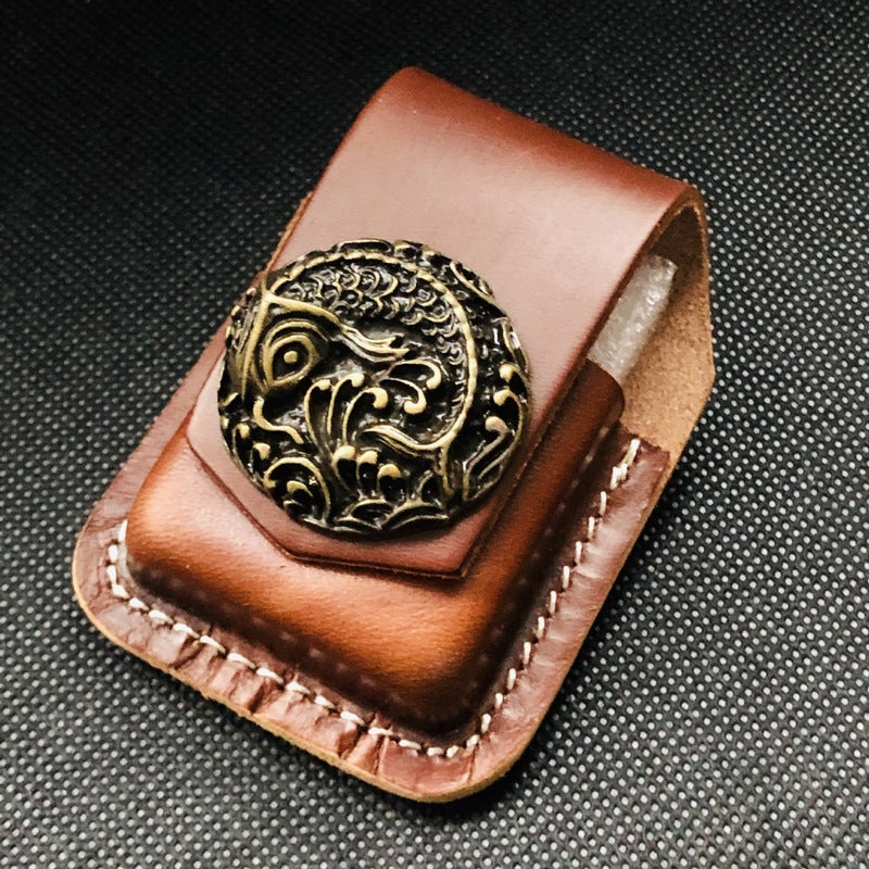 Design: Brown Handmade Leather Mens Black Zippo Lighter Holders Lighter Case For Men