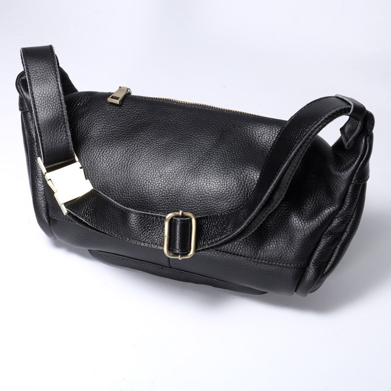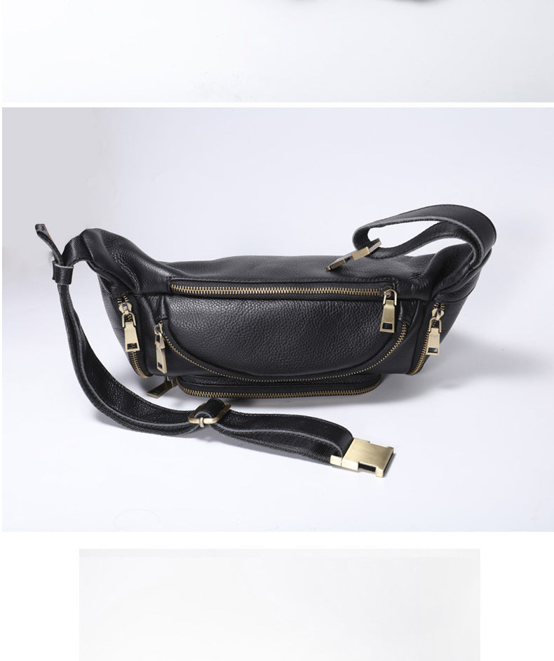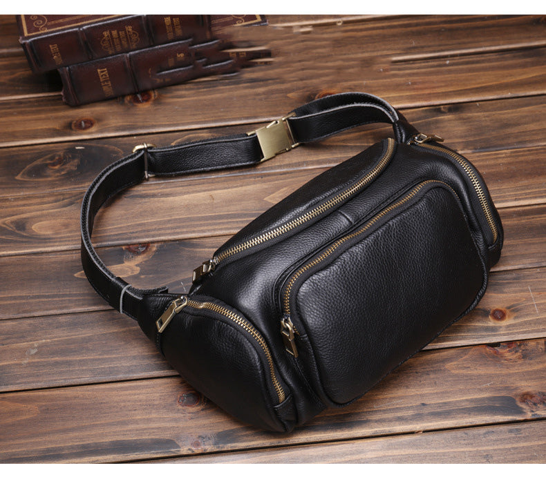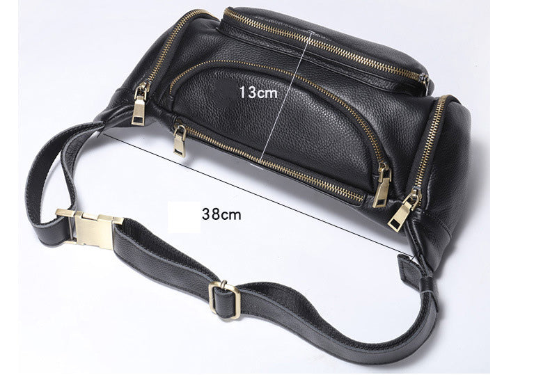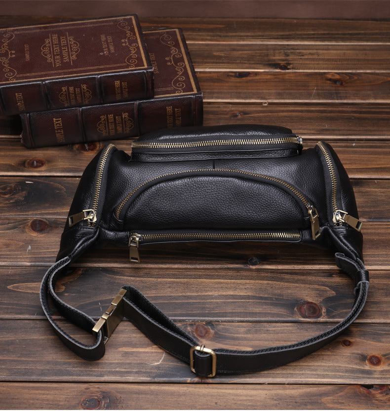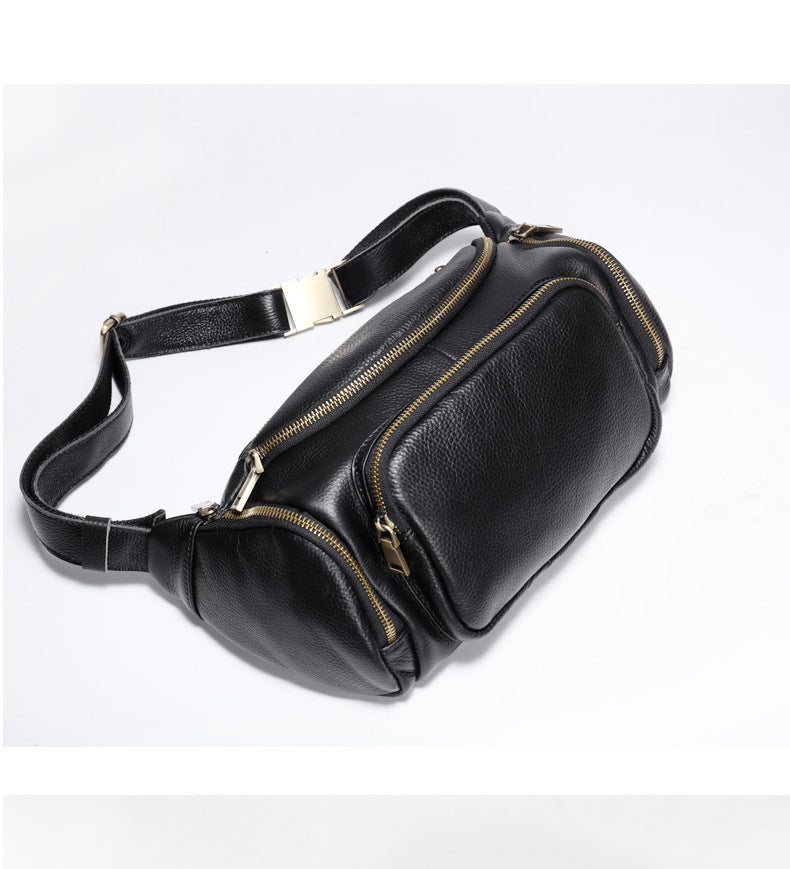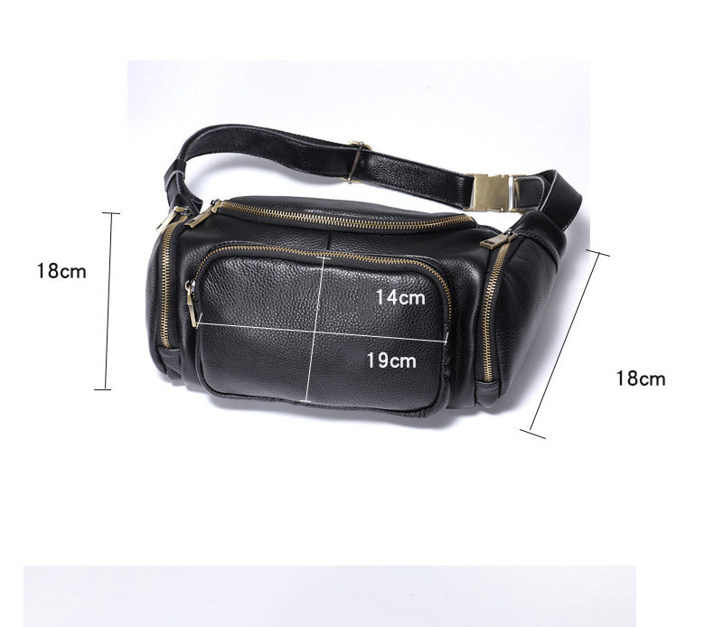 Design: Black Large Capacity Leather Mens Fanny Packs Barrel Bum Bags Cool Waist Bag for Men