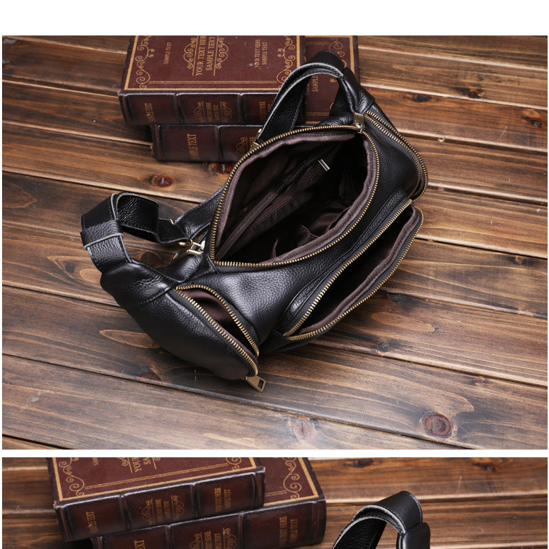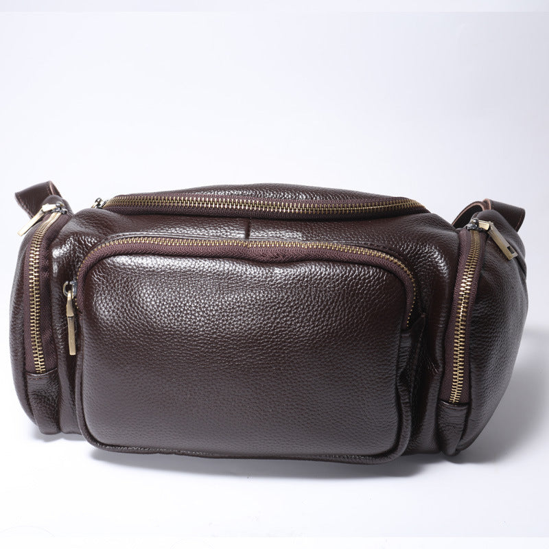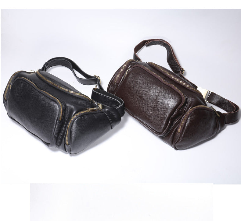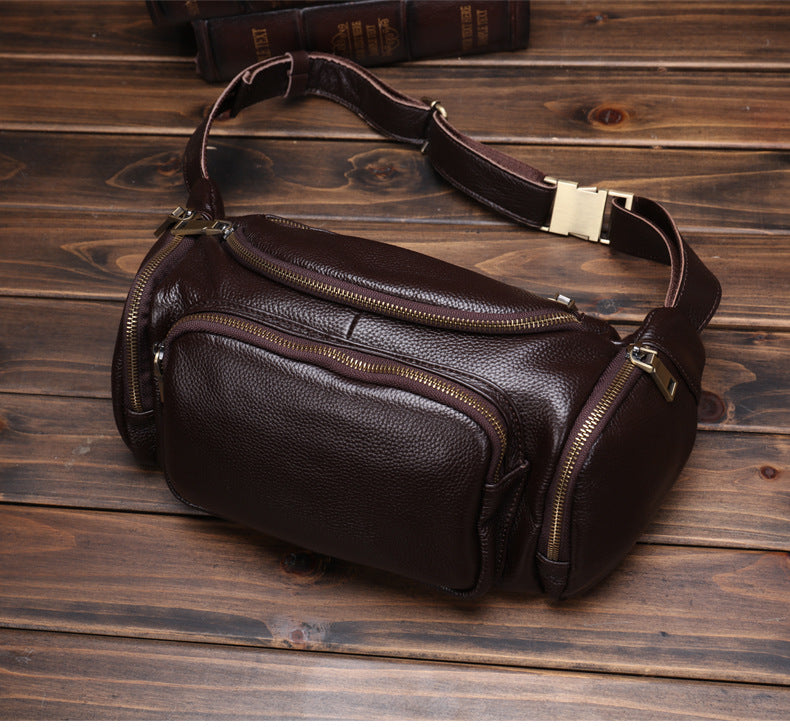Coffee Large Capacity Leather Mens Fanny Packs Barrel Bum Bags Cool Waist Bag for Men