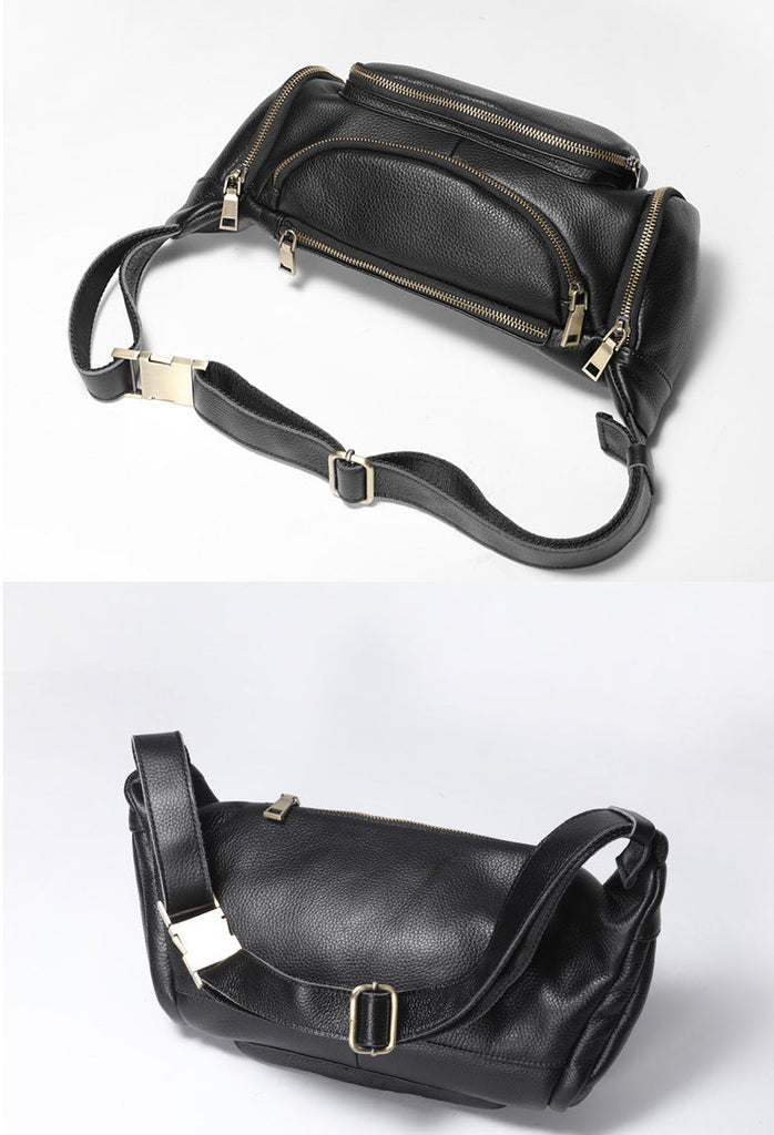 Style: Black Large Capacity Leather Mens Fanny Packs Barrel Bum Bags Cool Waist Bag for Men