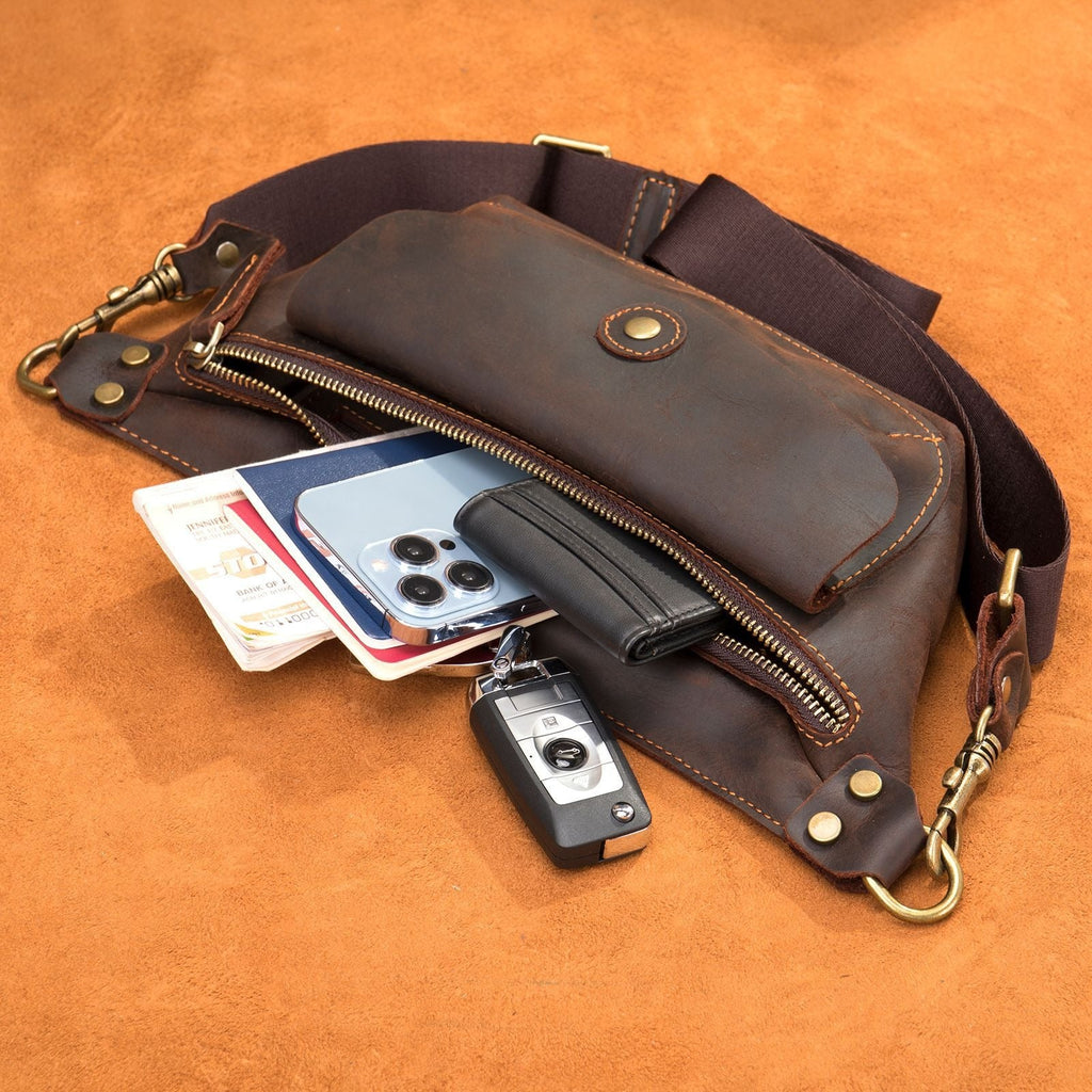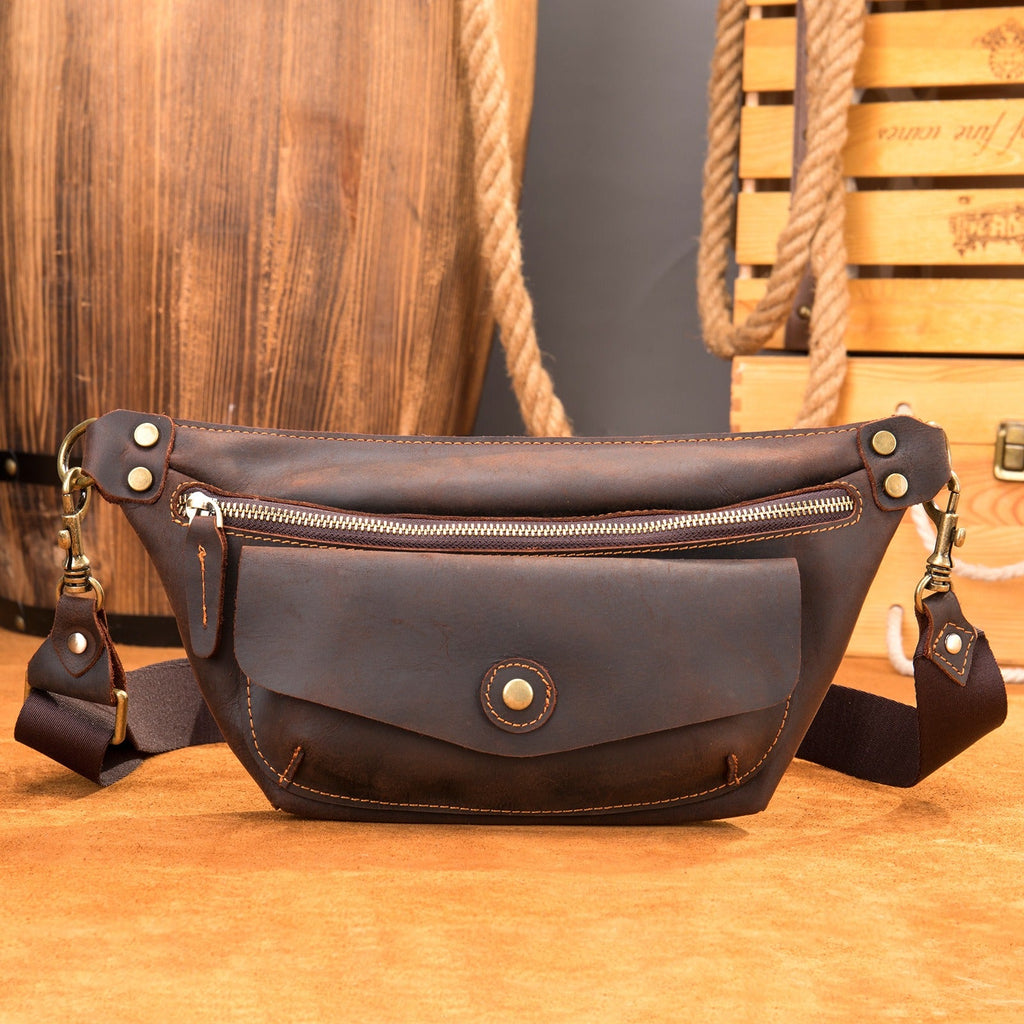 Design: Leather Fanny Pack Men's Best Chest Bag Best Hip Pack Waist Bag For Men