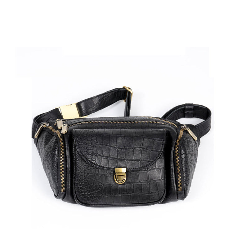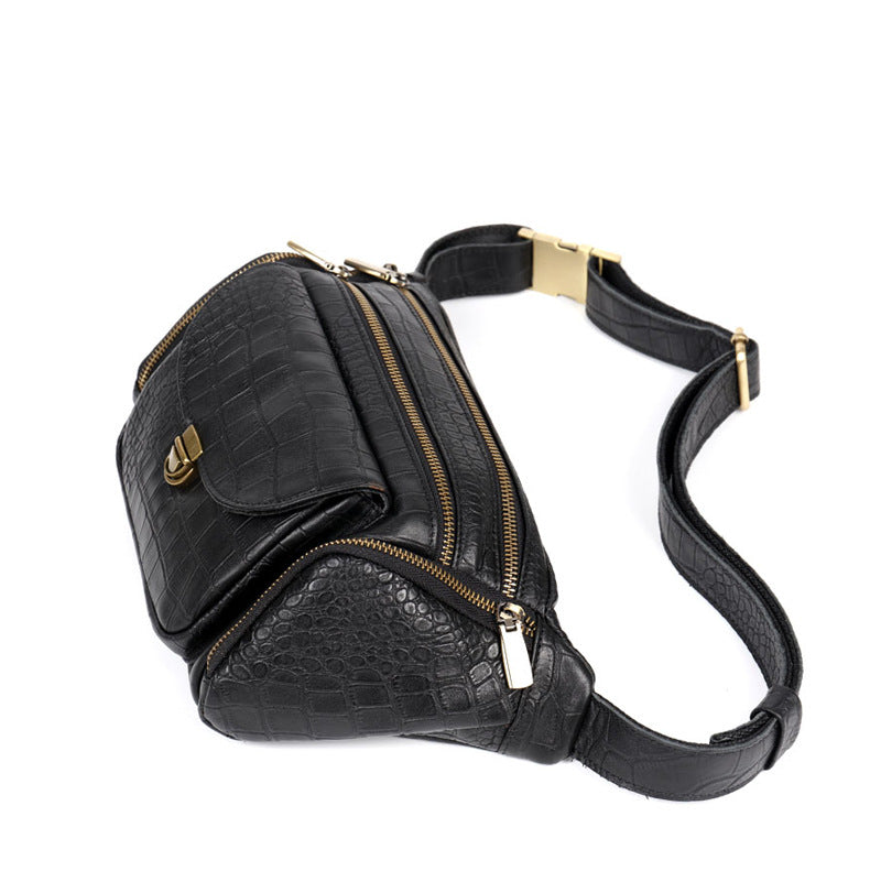 Design: Large Capacity Leather Mens Fanny Packs Barrel Bum Bags Cool Waist Bag for Men