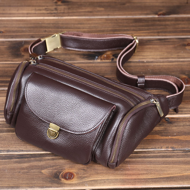 Coffee Leather Mens Fanny Packs Barrel Large Capacity Bum Bags Cool Waist Bag for Men
