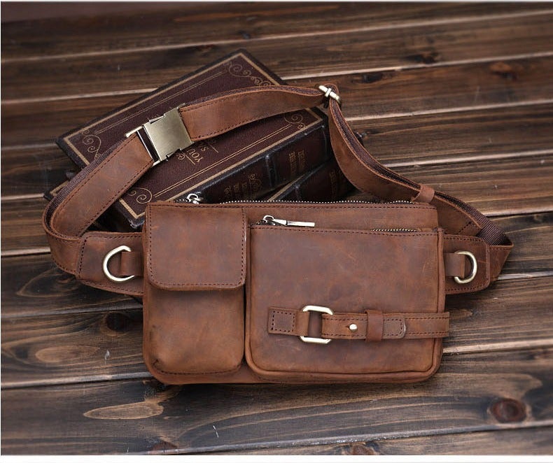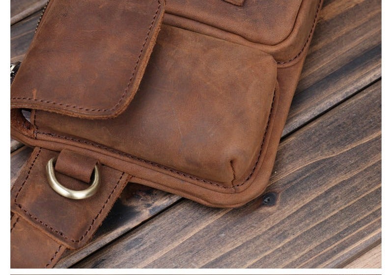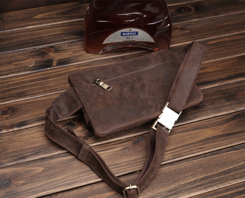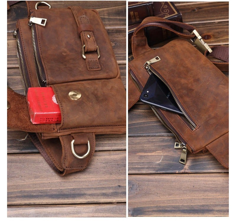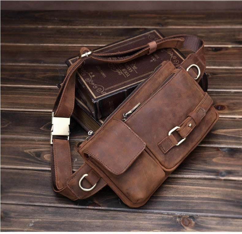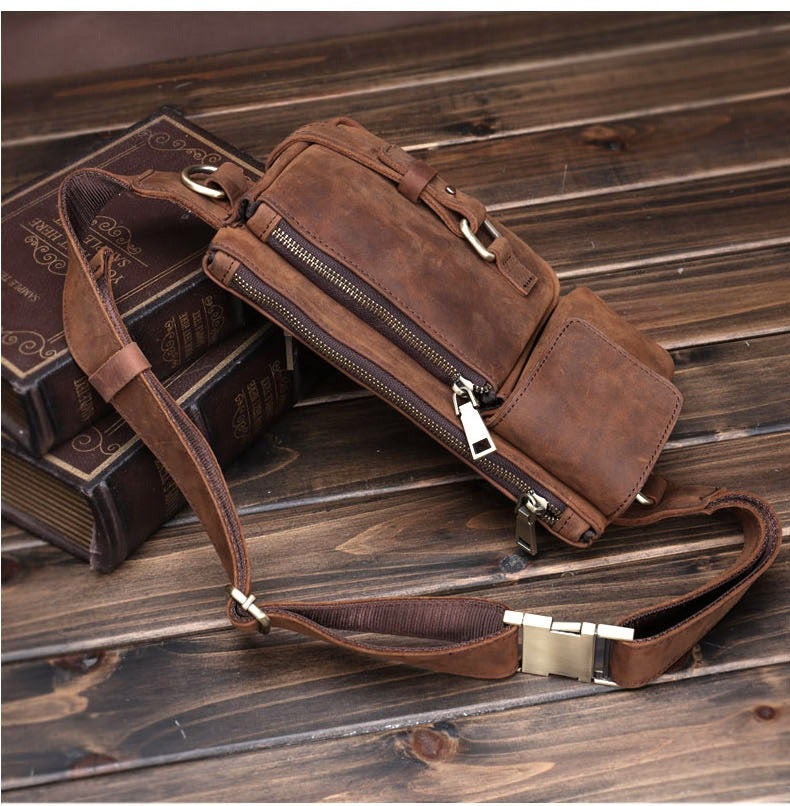 Design: Brown Leather Mens Fanny Packs Hip Packs Sling Bags Sling Pack Waist Bags for Men