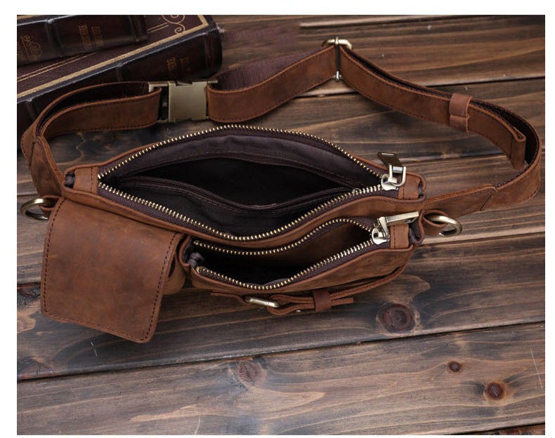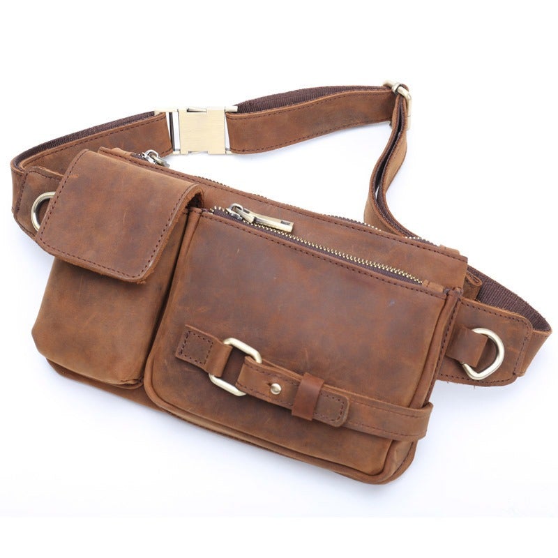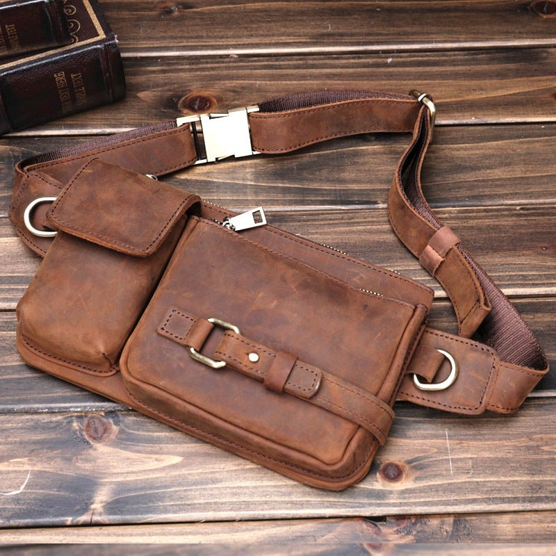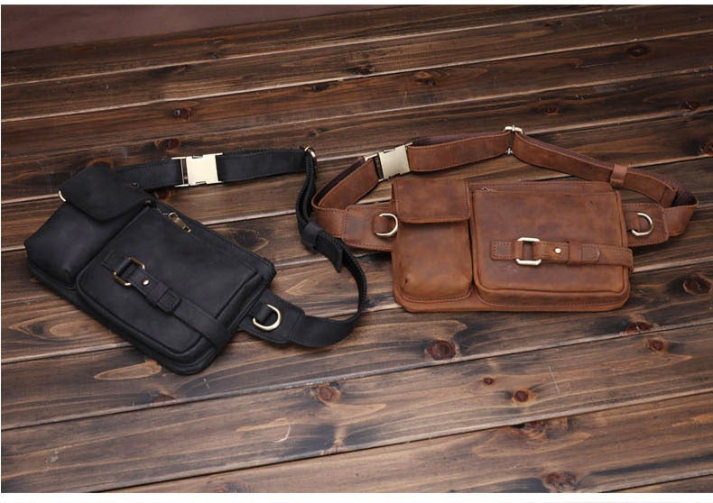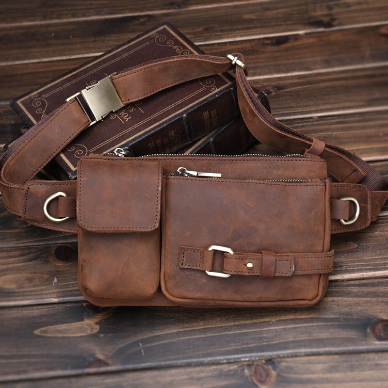 Design: Brown Leather Mens Fanny Packs Hip Packs Sling Bags Sling Pack Waist Bags for Men