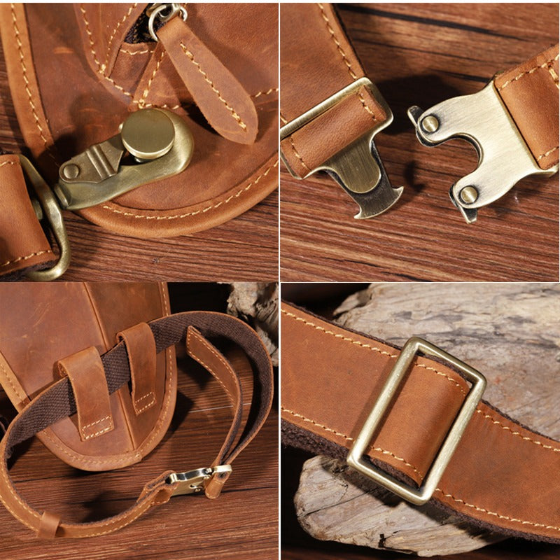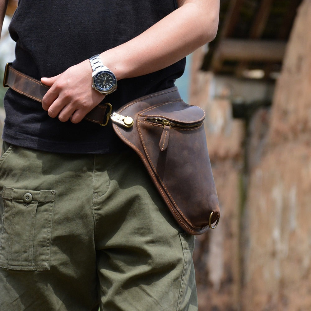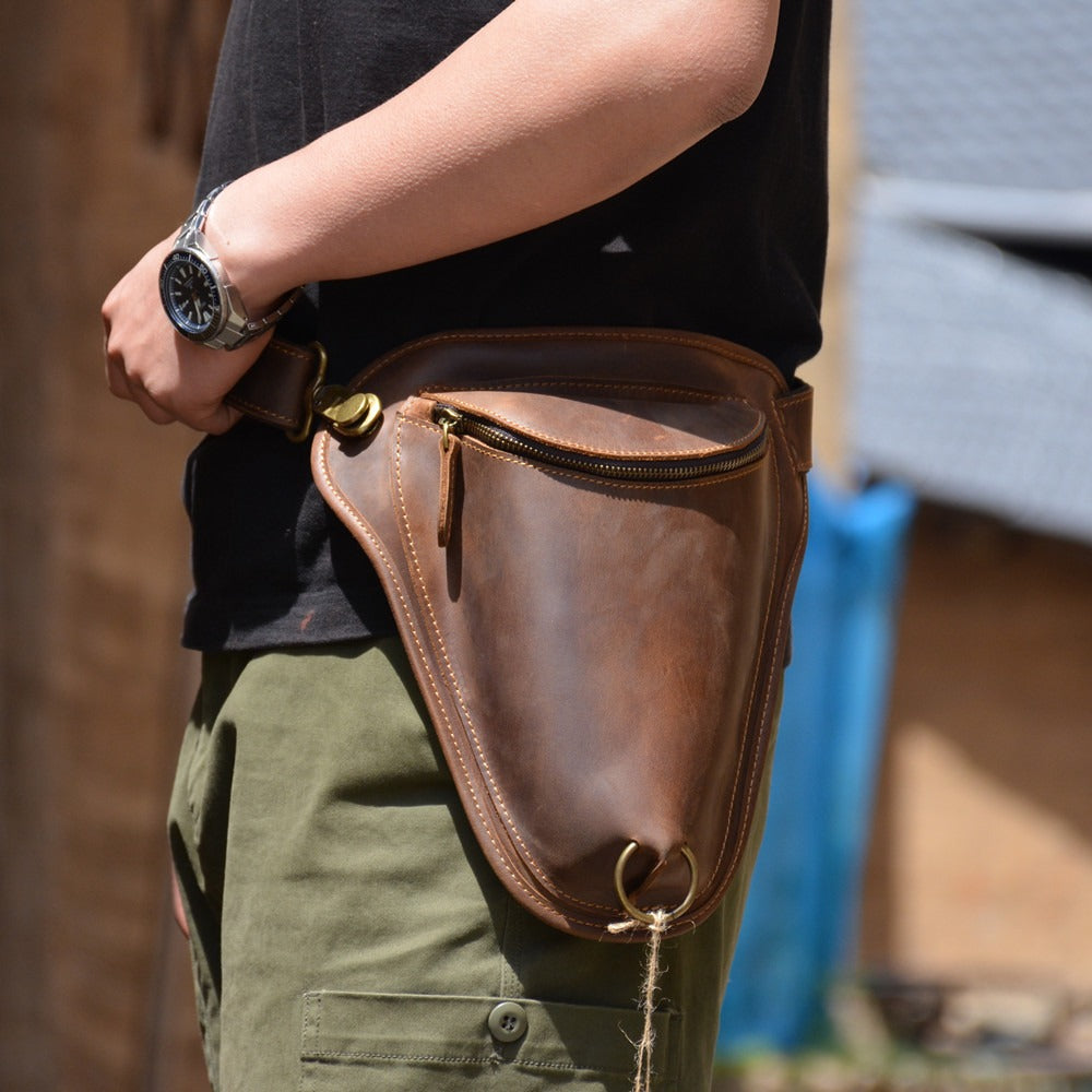 Coffee Leather Mens OX Thigh Bag Waist Bag Hip Pack Dropleg Bag Side Bag For Men
