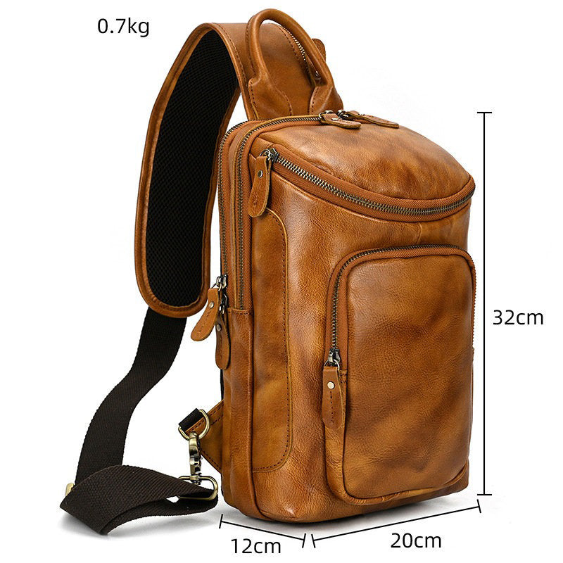 Style: Best LEATHER MENS Sling Bag Vintage One Shoulder Backpack Top Chest Bag For Men