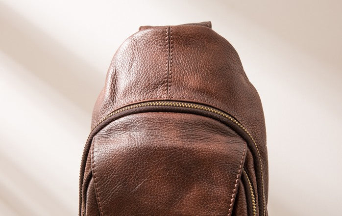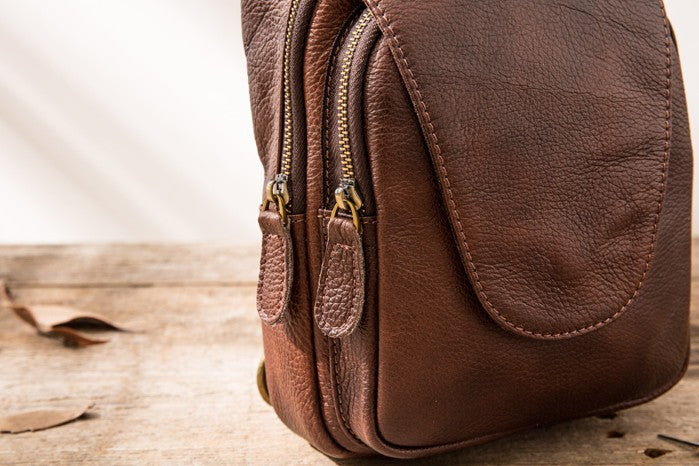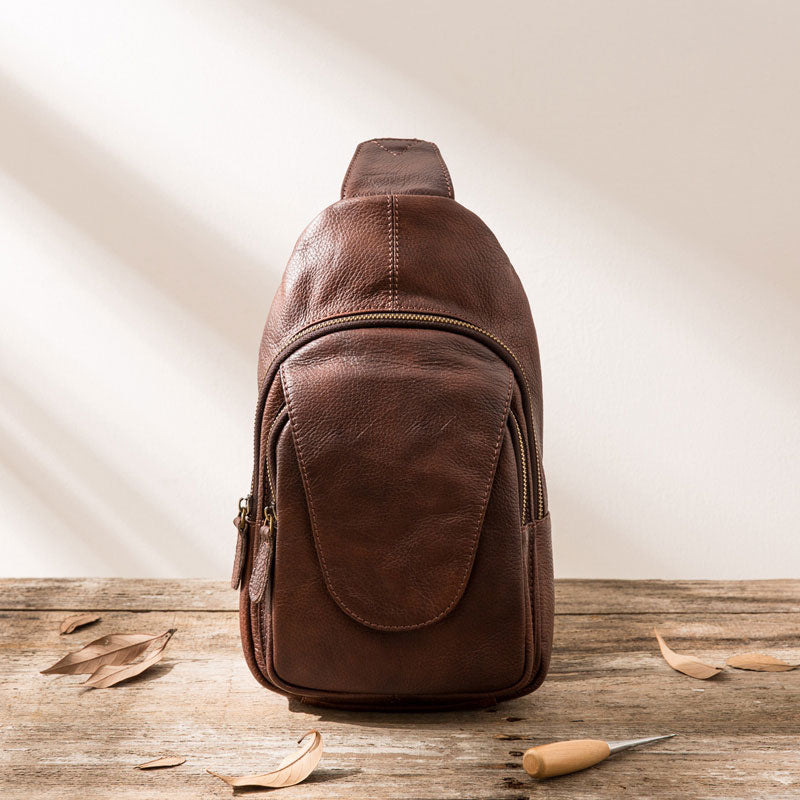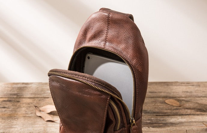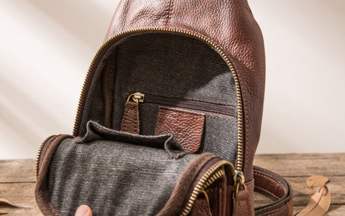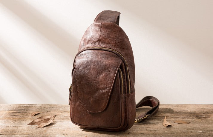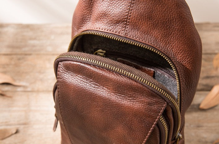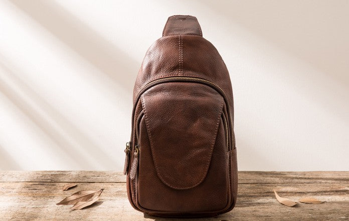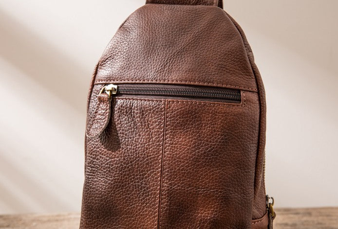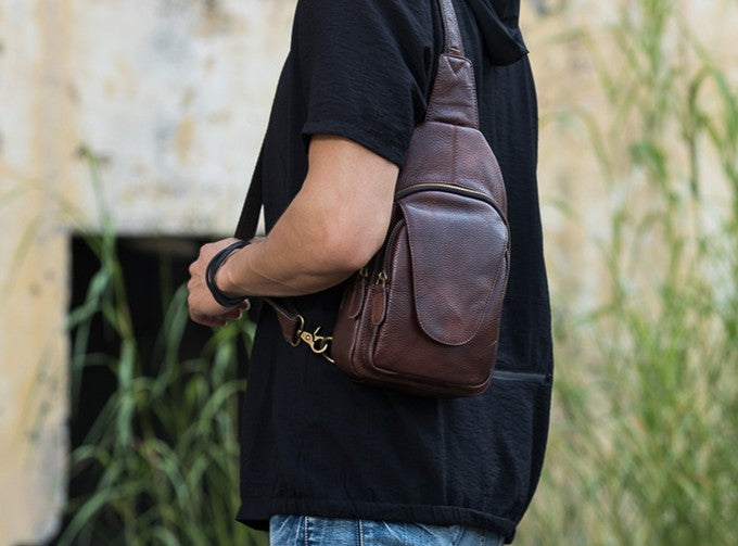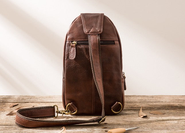 Style: Coffee Leather Mens Sling Bag Sling Shoulder Bags Sling Backpacks for men