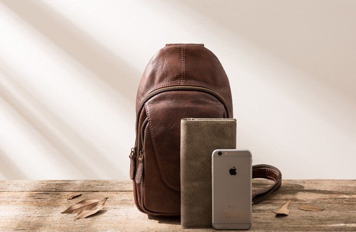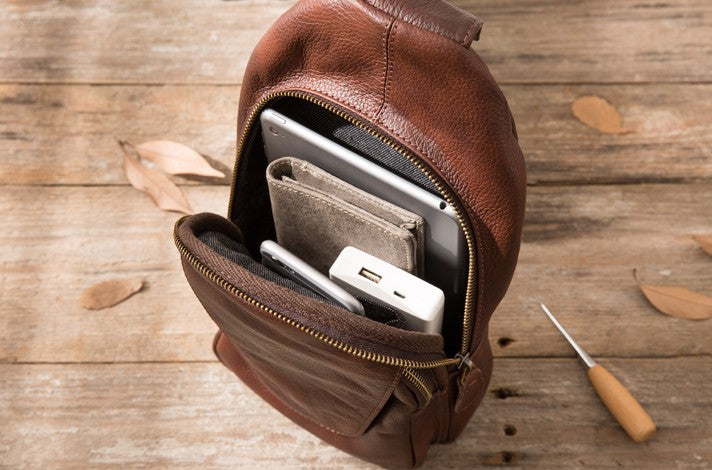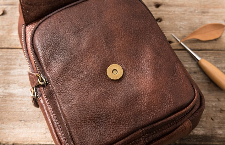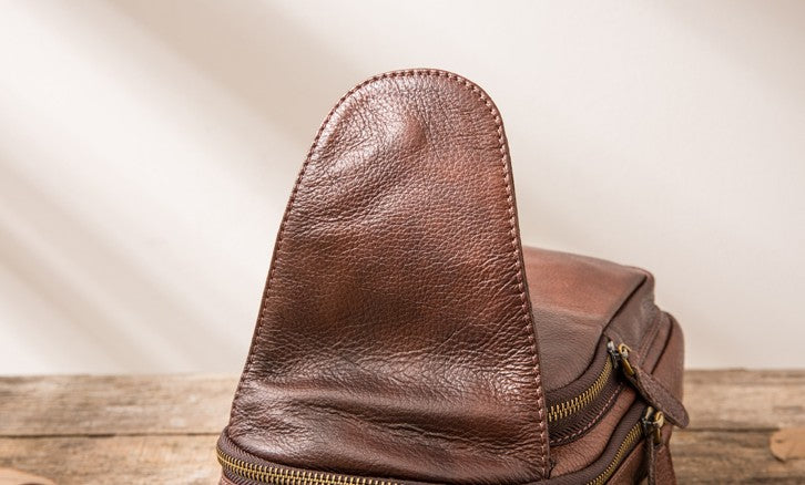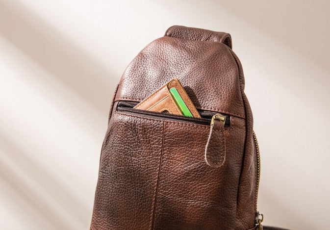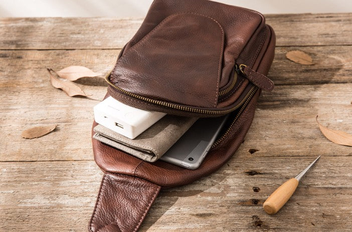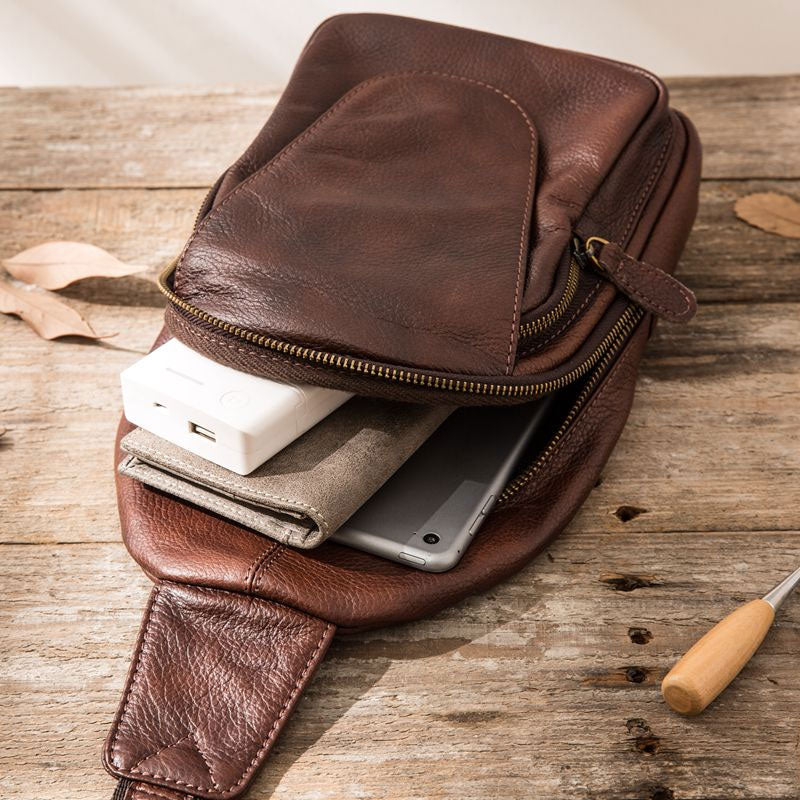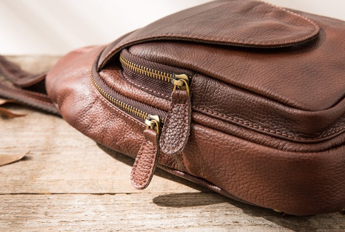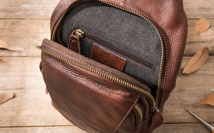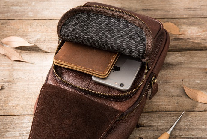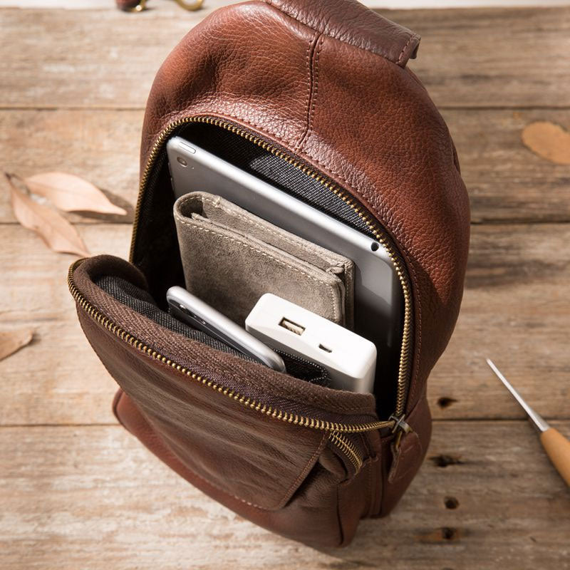 Style: Coffee Leather Mens Sling Bag Sling Shoulder Bags Sling Backpacks for men