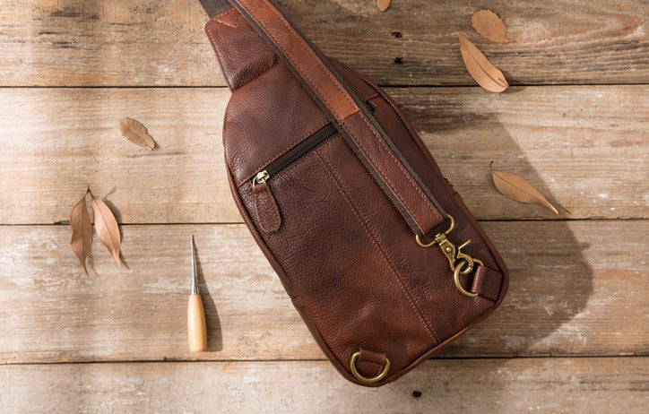 Design: Coffee Leather Mens Sling Bag Sling Shoulder Bags Sling Backpacks for men