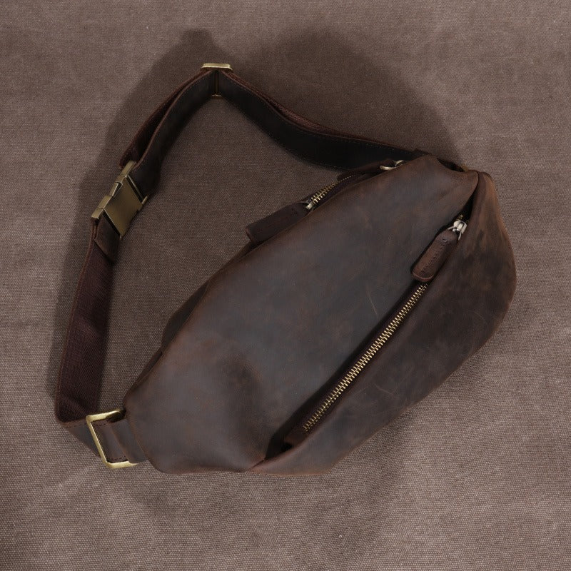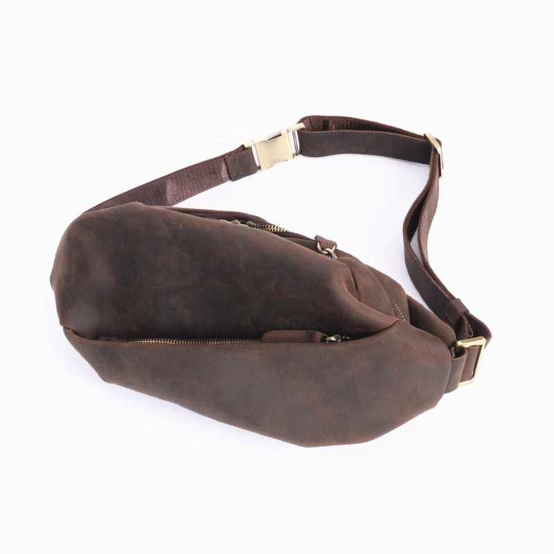 Dark Brown Leather Sling Bag Cool Waist Bags Mens Fanny Packs Chest Pack Bum Bags for Men